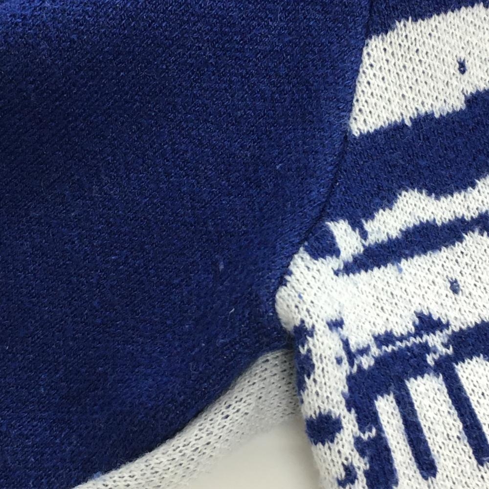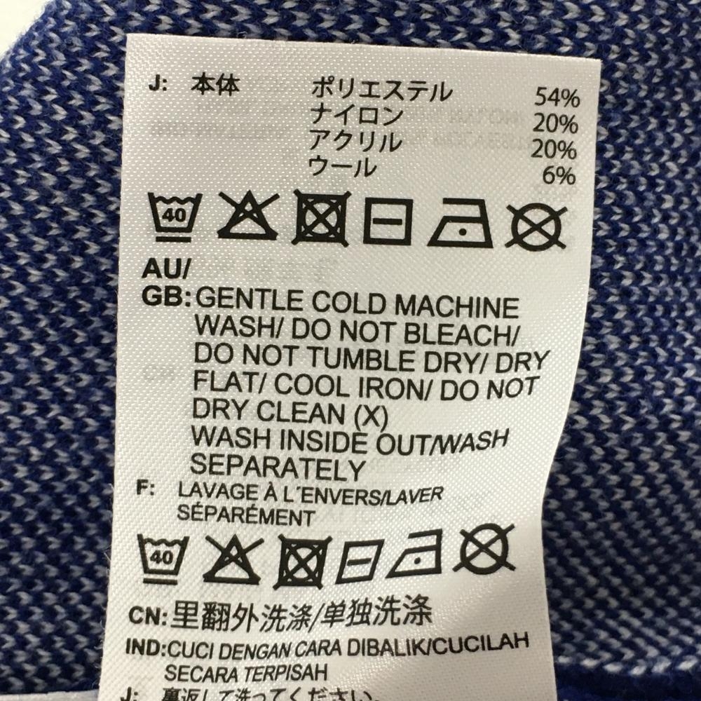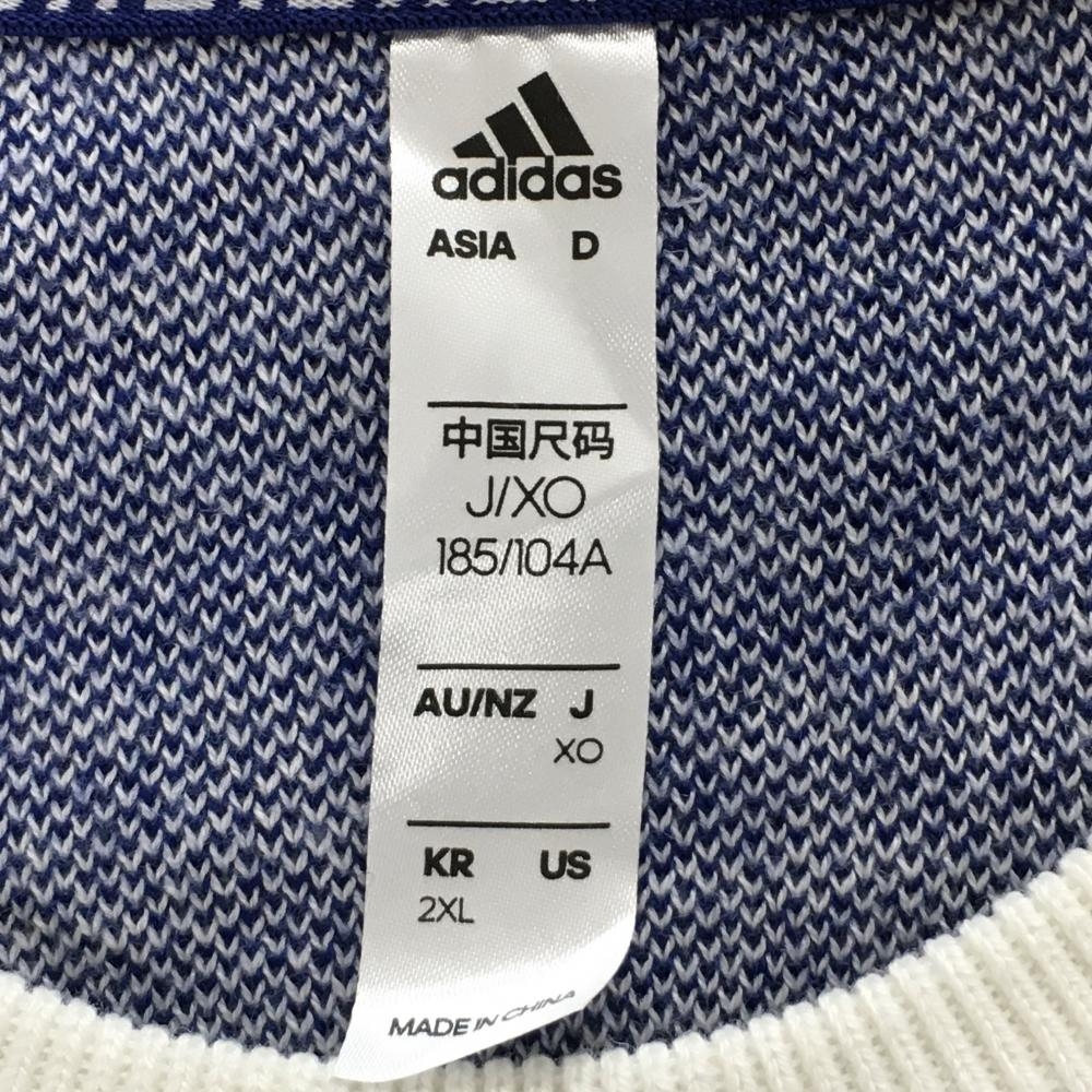 【美品】アディダス セーター ブルー×白 総柄 袖3ライン ウール混 ニット メンズ XO(XXL) ゴルフウェア adidas