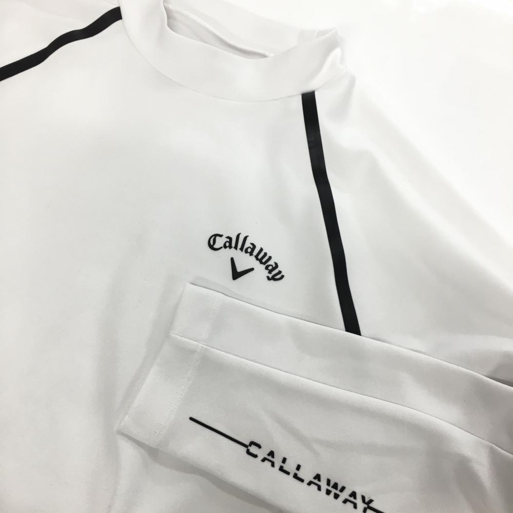 【超美品】キャロウェイ 長袖ハイネックシャツ 白×黒 サイド一部メッシュ ロゴ メンズ L ゴルフウェア Callaway