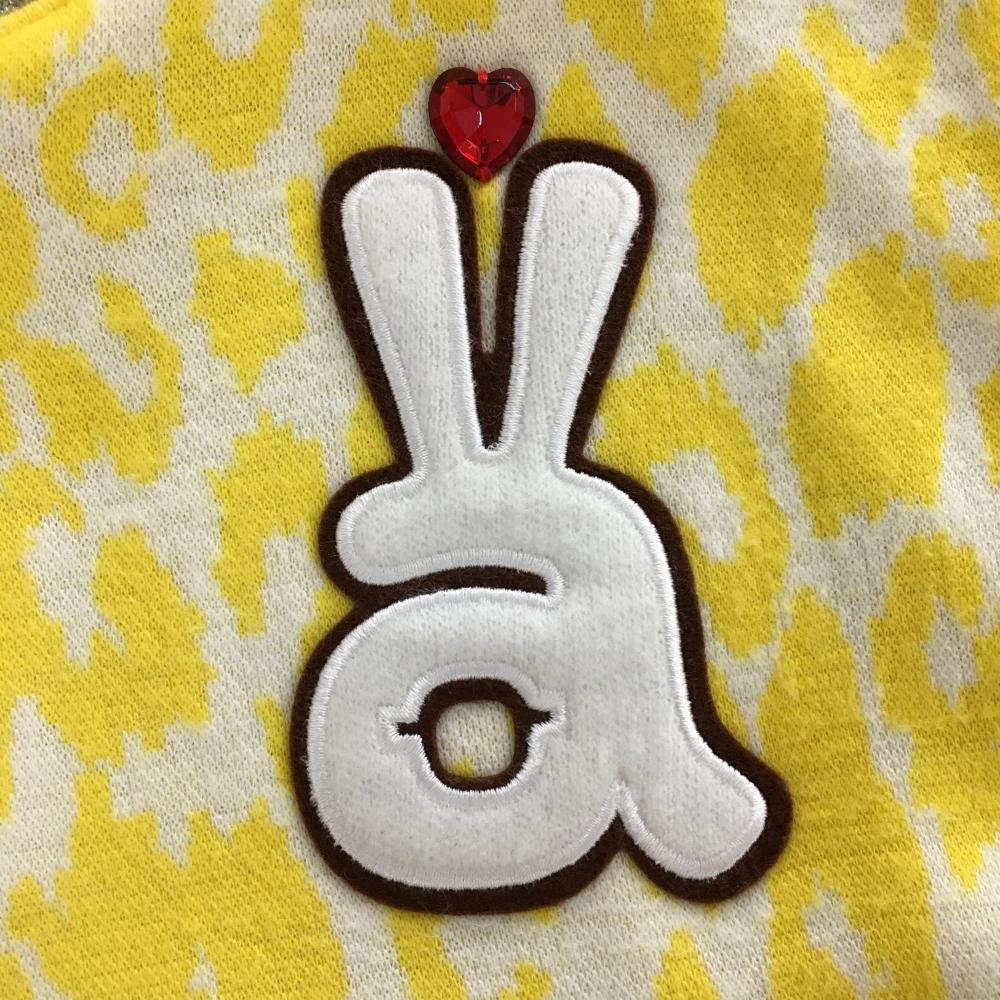【美品】アルチビオ ハイネックニットベスト イエロー 裏地付 レオパード レディース 38(M) ゴルフウェア archivio