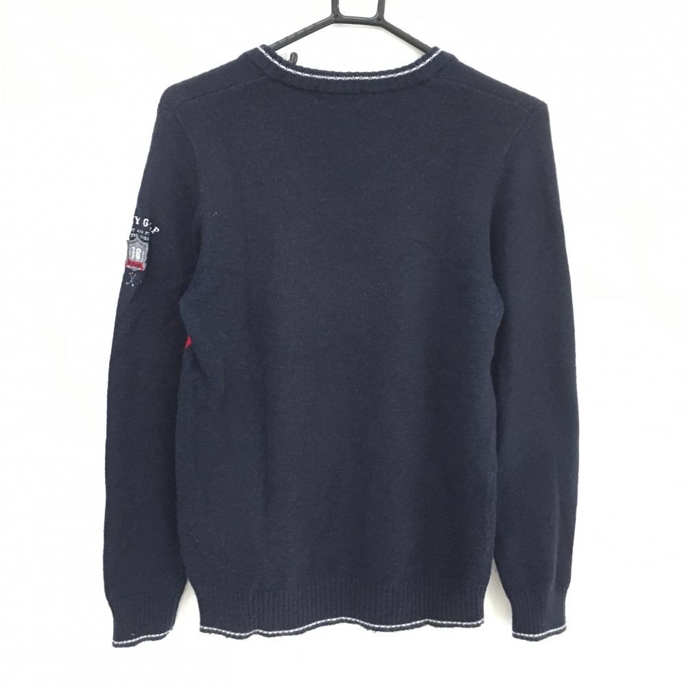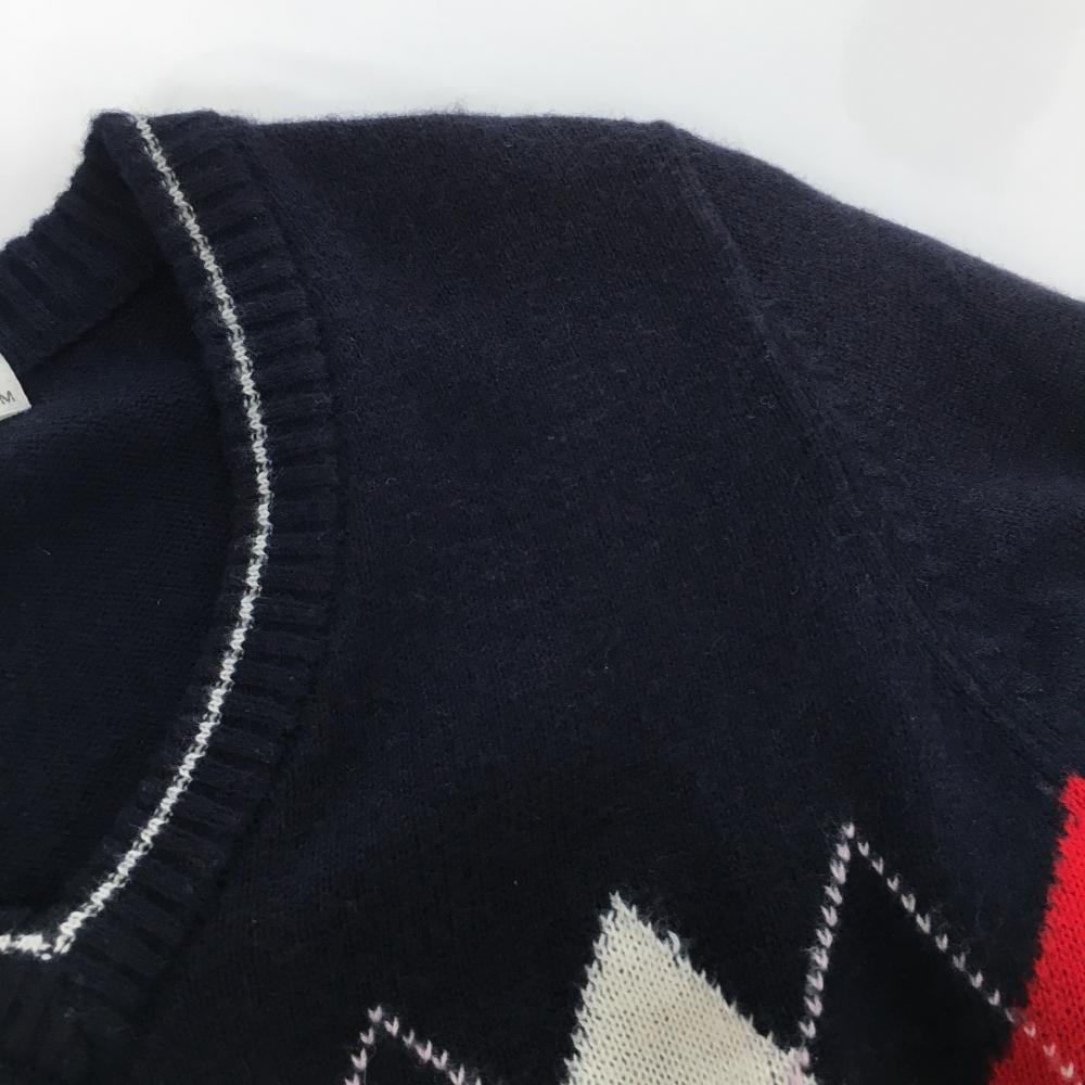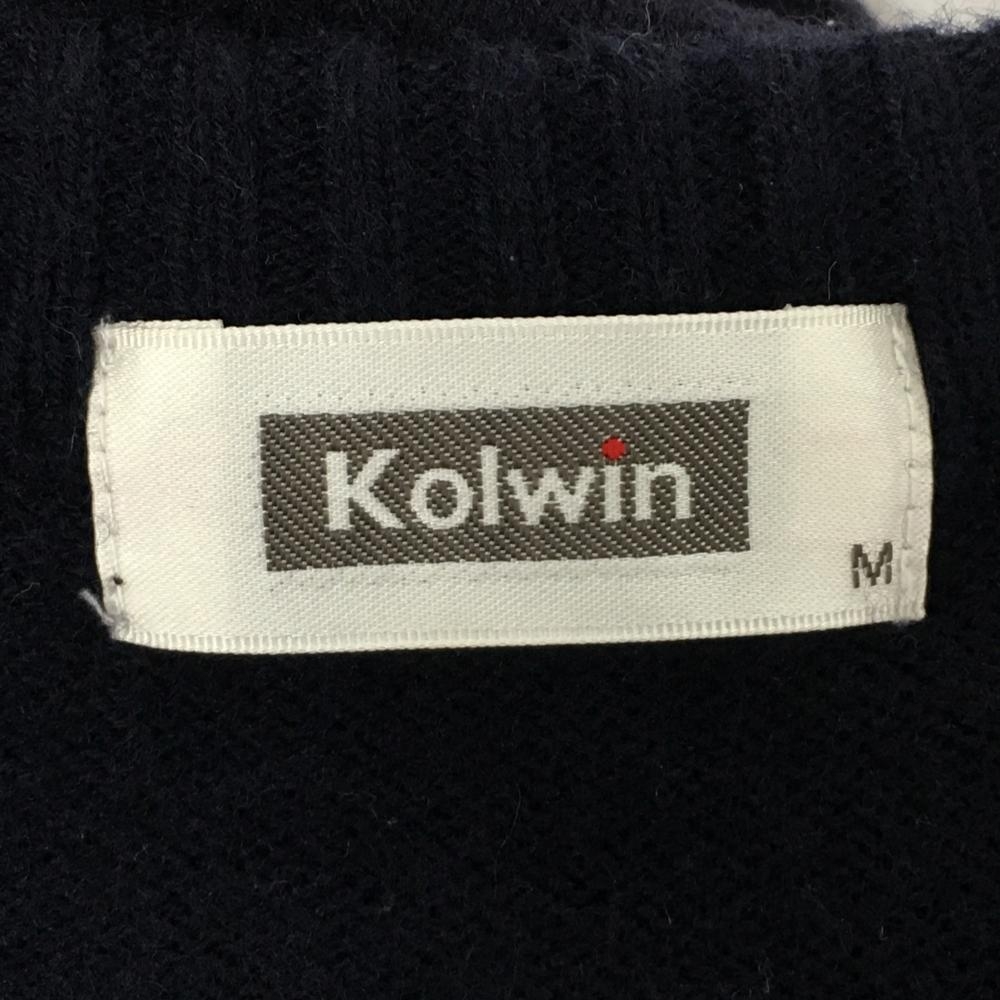 コルウィン セーター ネイビー×白 アーガイル柄 ハート ウール混 ニット レディース M ゴルフウェア Kolwin