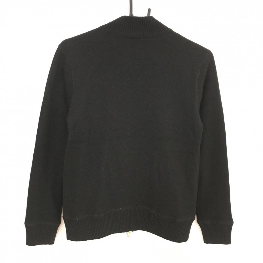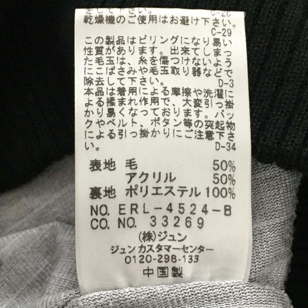 ジュンアンドロペ ニットジャケット 黒×白 蓄熱裏地 胸ロゴ ウール混 ニット レディース M ゴルフウェア JUN&ROPE