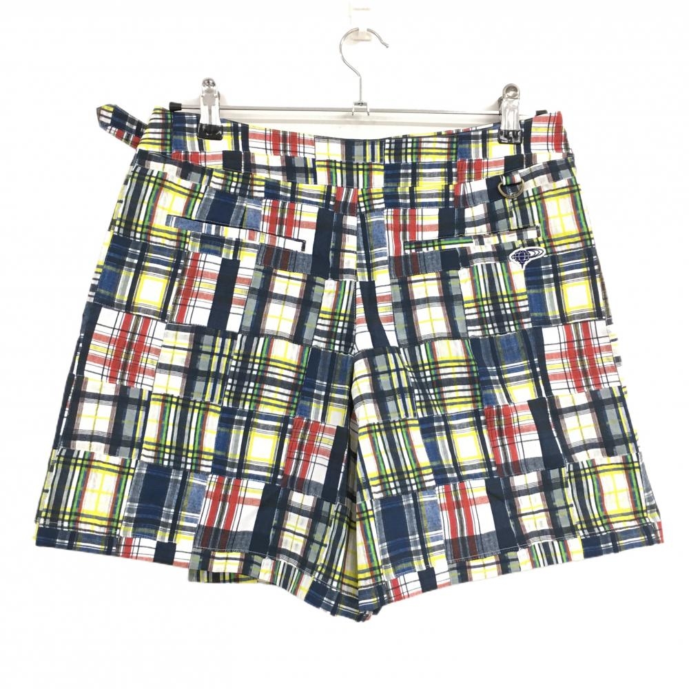 【超美品】ビームスゴルフ キュロットスカート ネイビー×イエロー チェック レディース L ゴルフウェア BEAMS GOLF