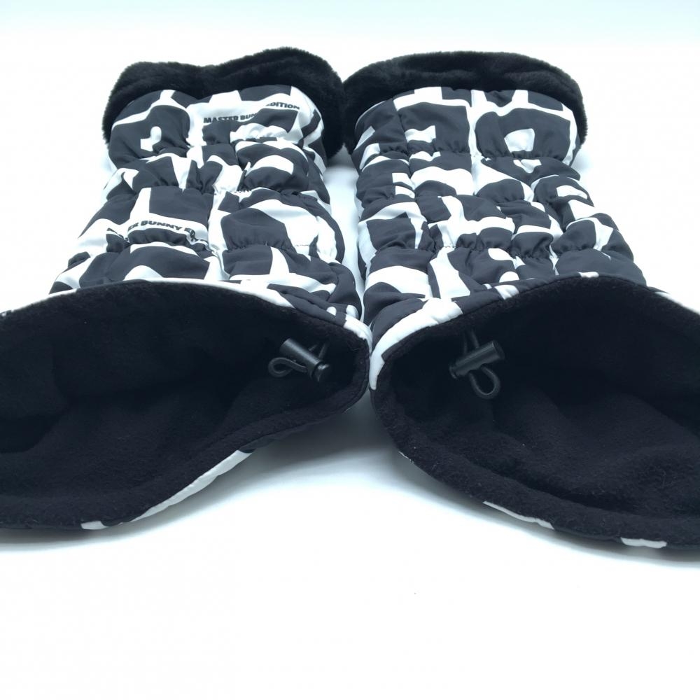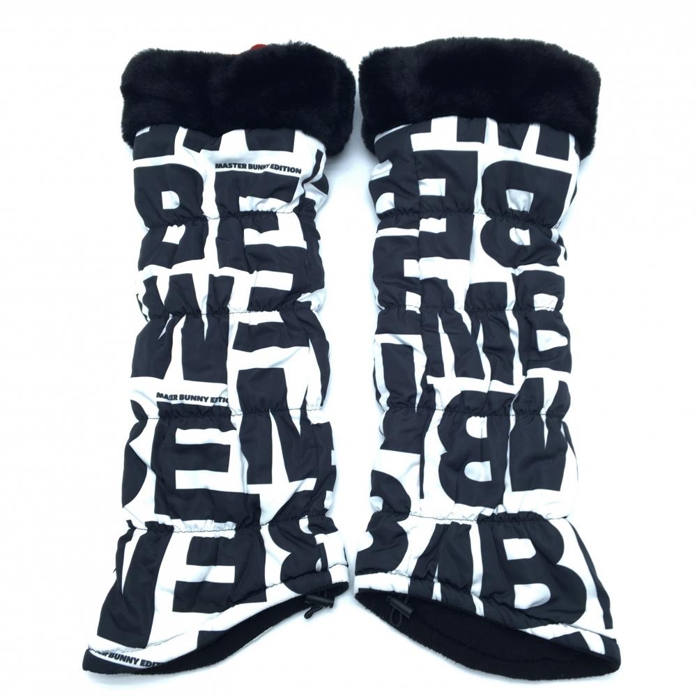 【美品】マスターバニー 中綿レッグウォーマー 白×黒 ロゴ総柄 裏起毛 レディース ゴルフウェア MASTER BUNNY EDITION