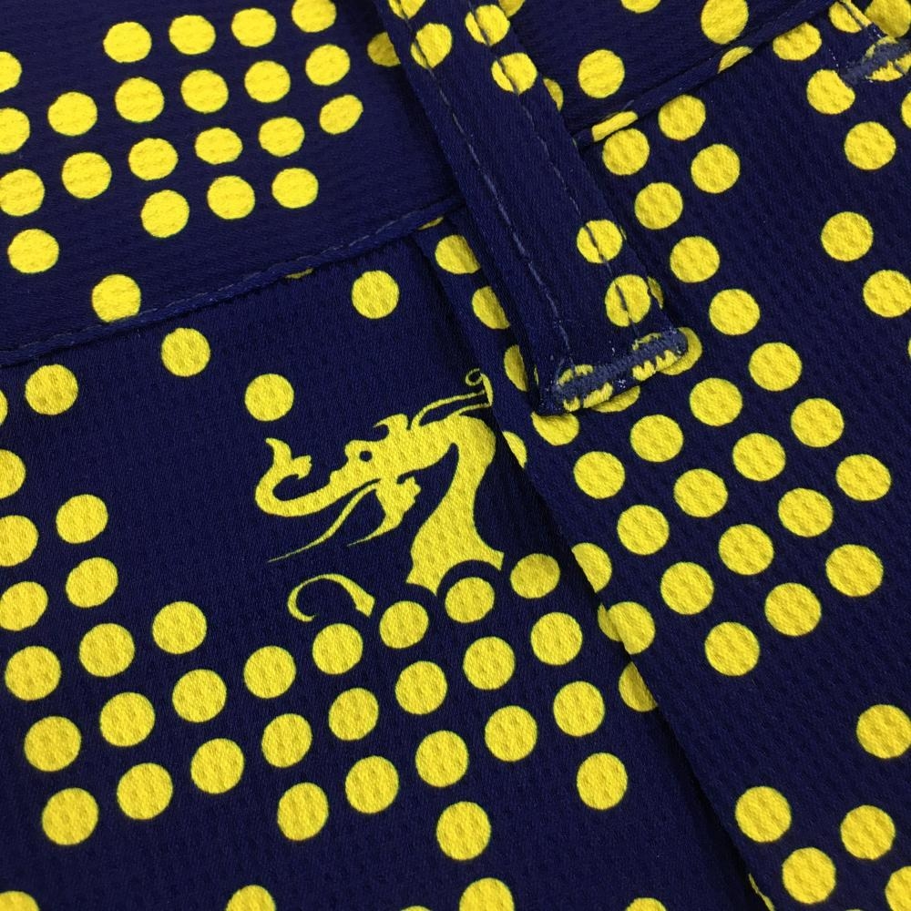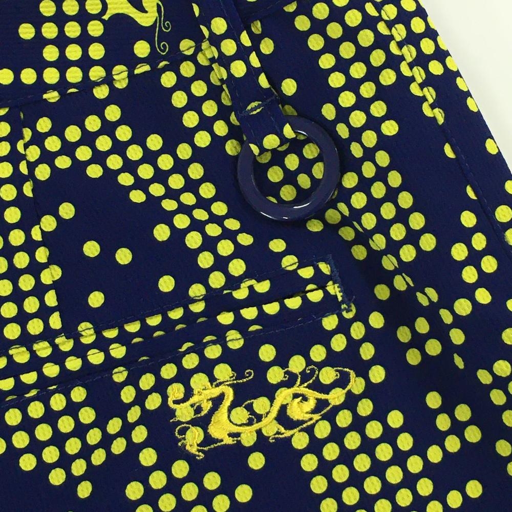 【超美品】ダンスウィズドラゴン ショートパンツ ネイビー×イエロー ドット ストレッチ レディース 3(L) ゴルフウェア Dance With Dragon