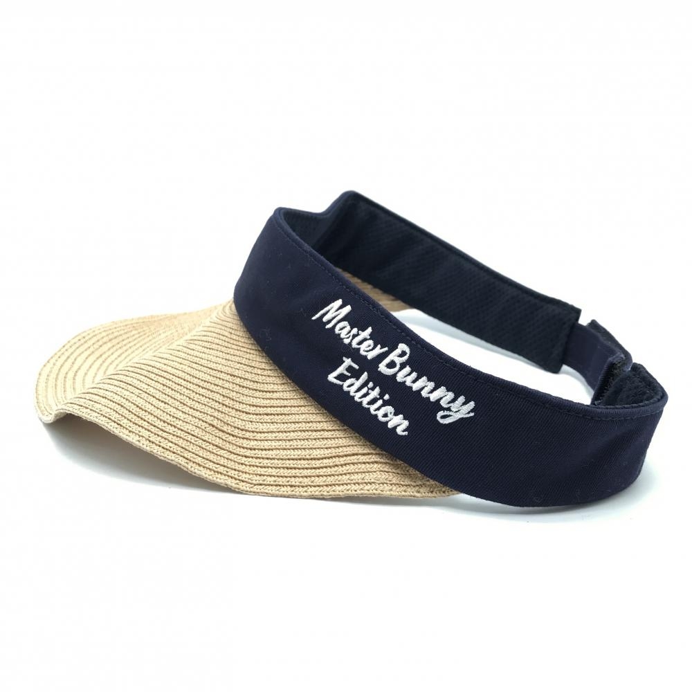 マスターバニー サンバイザー ネイビー×ベージュ つば麦わら風 ロゴ FR ゴルフウェア MASTER BUNNY EDITION