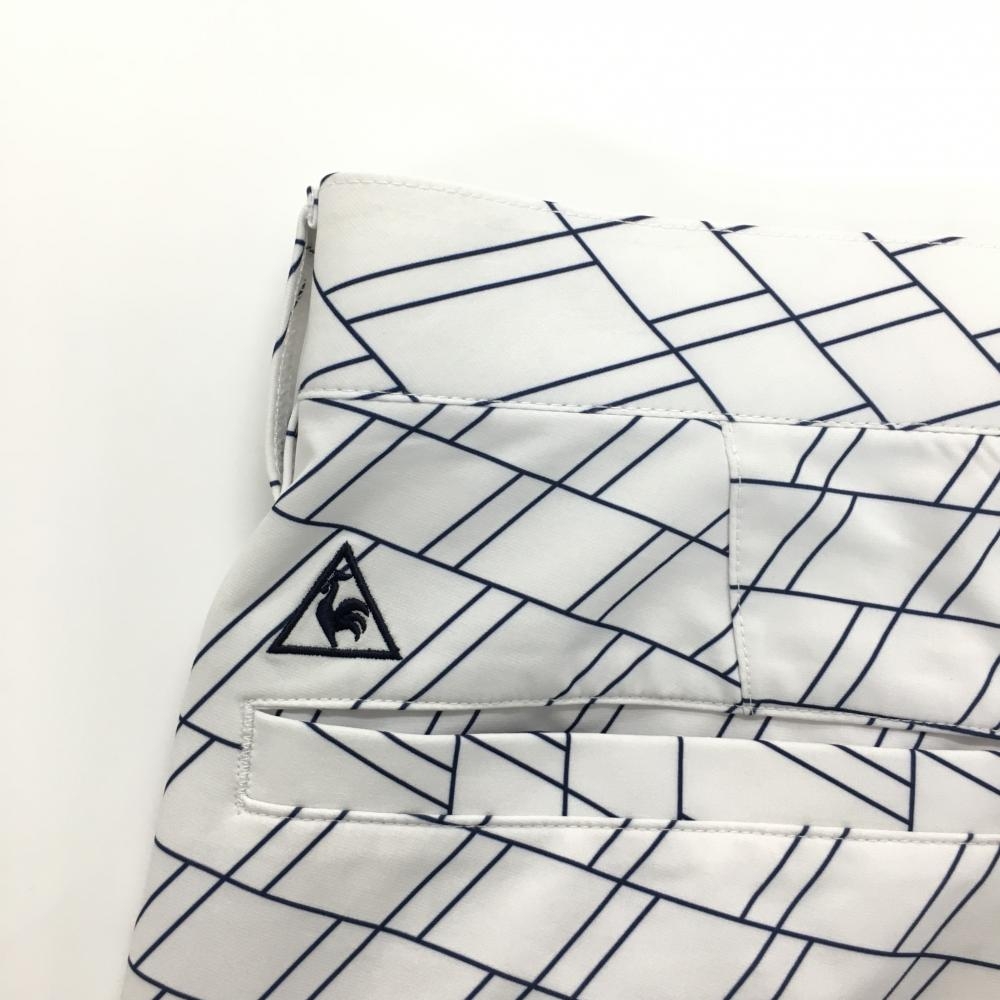 【美品】ルコックゴルフ パンツ 白×ネイビー 総柄 ストレッチ メンズ 85 ゴルフウェア le coq sportif