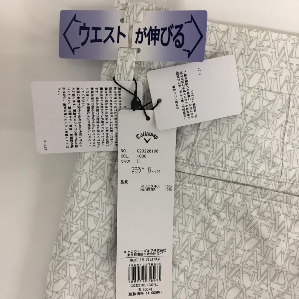 【新品】キャロウェイ パンツ 白×グレー ロゴ総柄 ストレッチ メンズ LL ゴルフウェア 2023年モデル Callaway