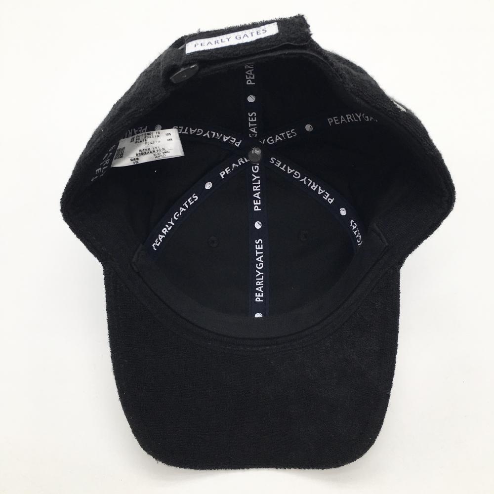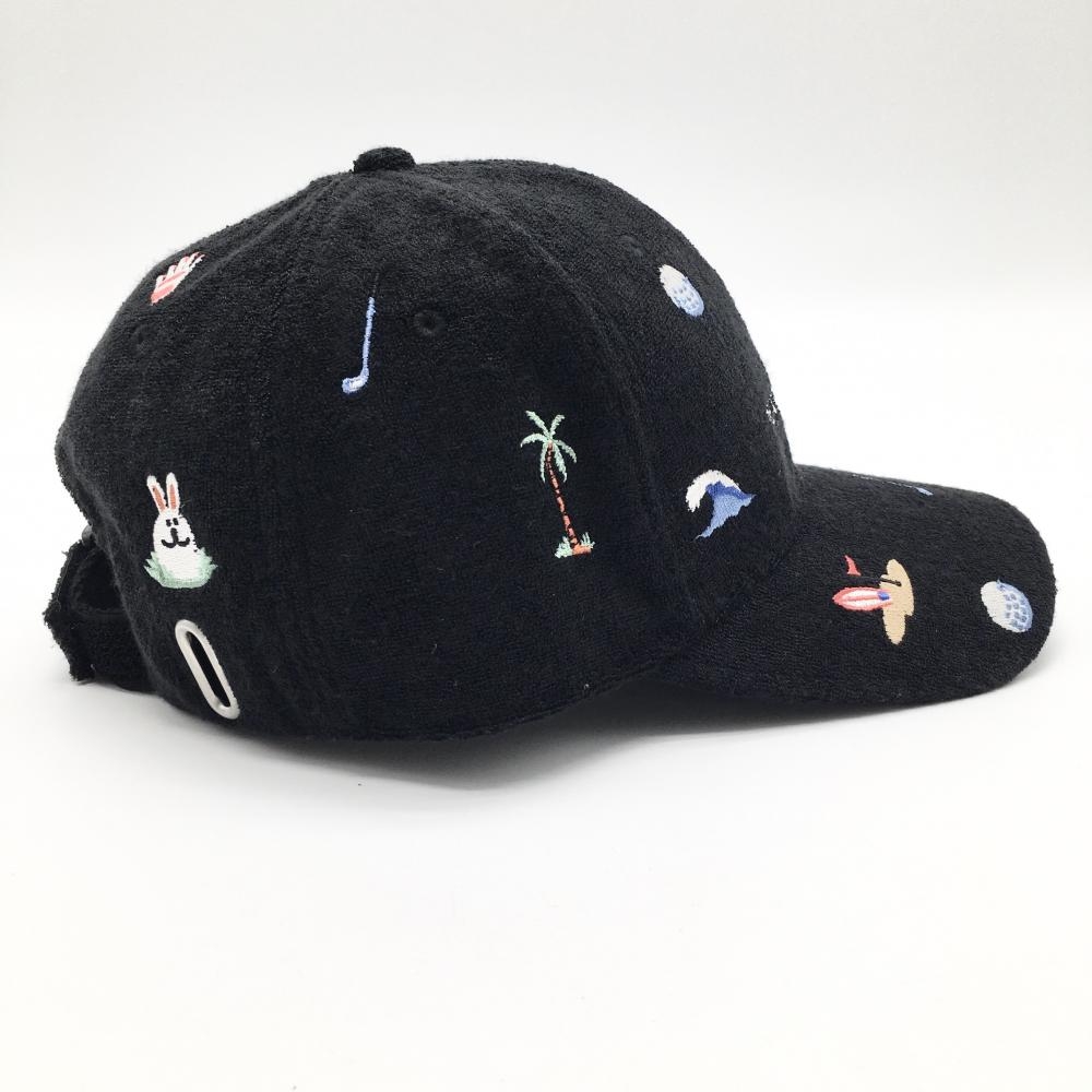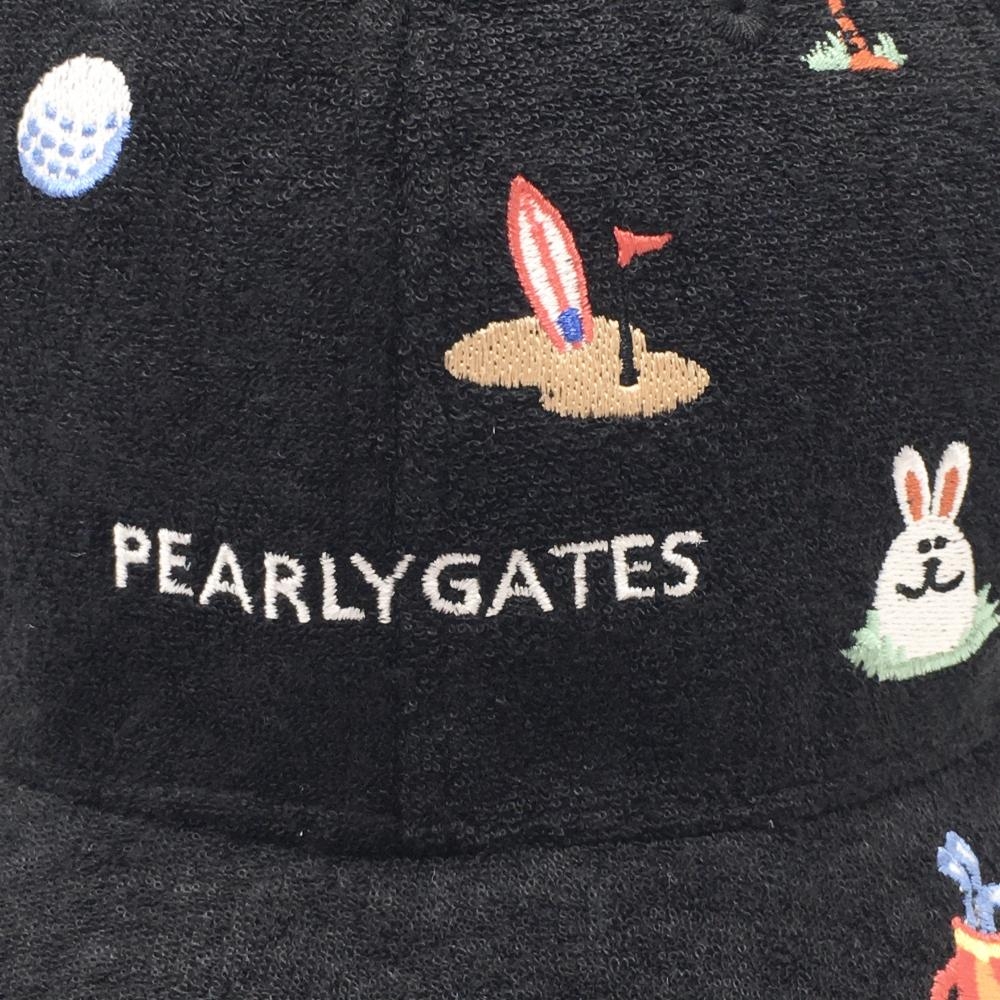 【超美品】パーリーゲイツ キャップ 黒×マルチカラー 総柄刺しゅう ウサギ ヤシの木 パイル地 FR ゴルフウェア PEARLY GATES