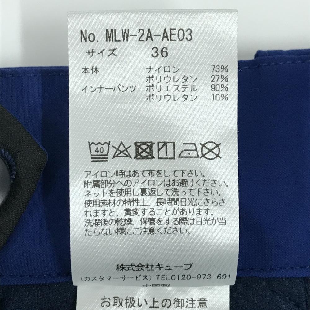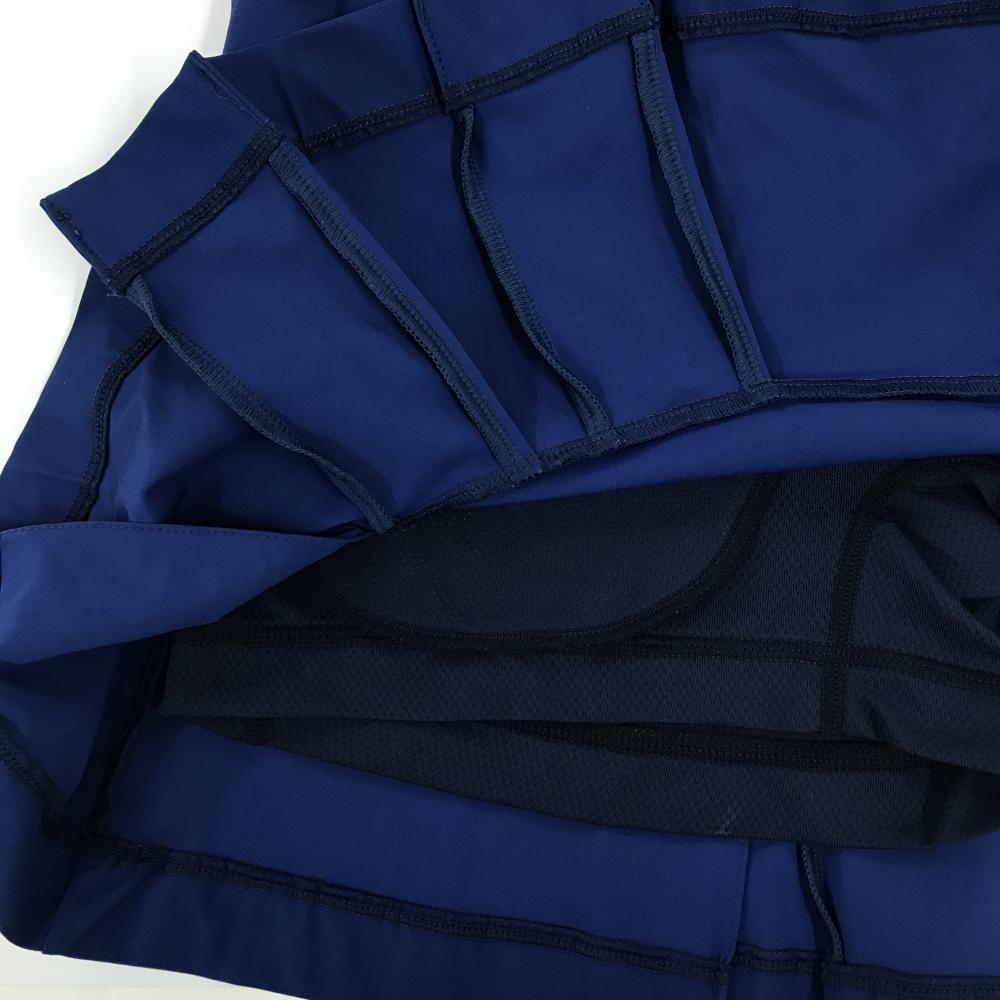 【美品】マークアンドロナ ストレッチスカート ブルーネイビー系×イエロー 裾プリーツ レディース 36(S) ゴルフウェア MARK&LONA