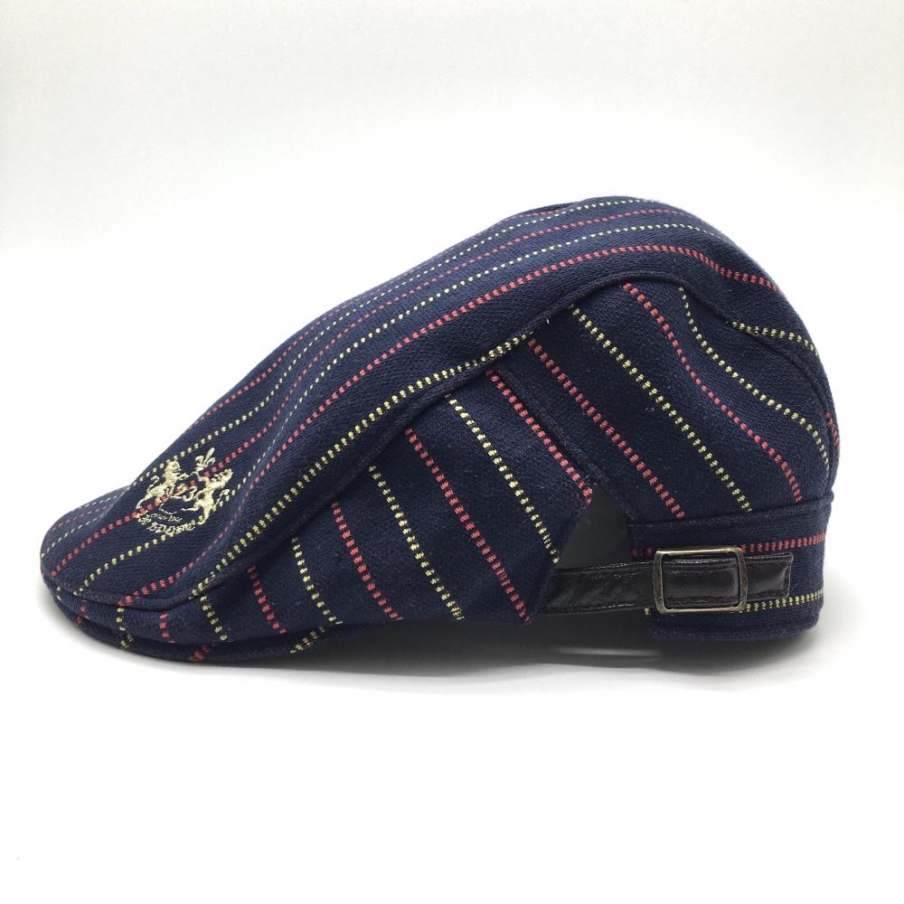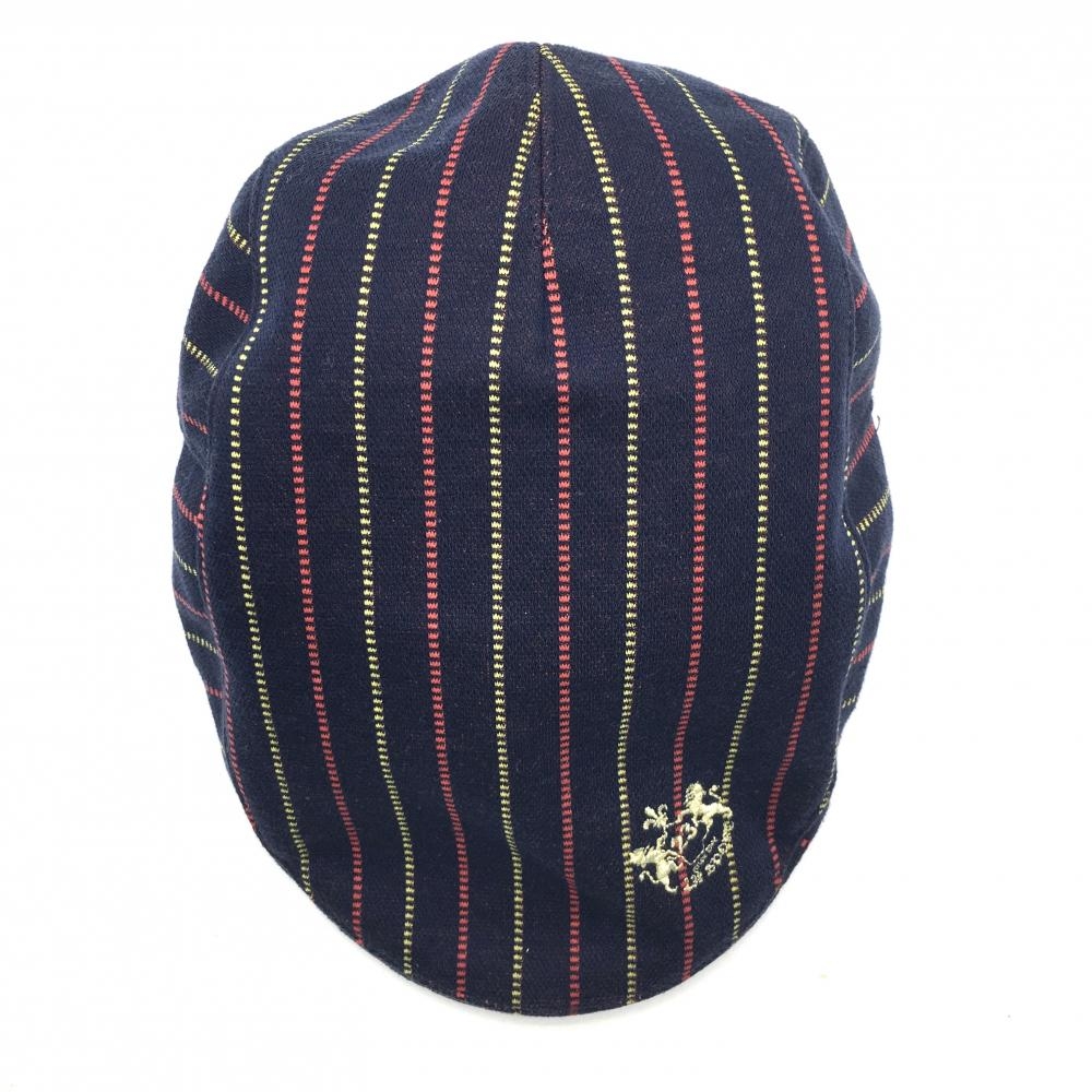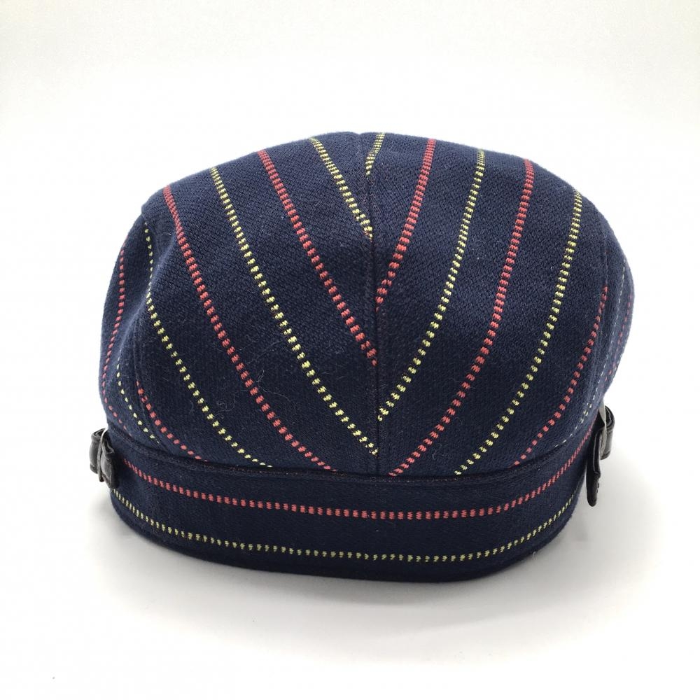 【美品】23区スポーツ キャスケット帽 ネイビー×イエロー ストライプ ロゴ刺しゅう F ゴルフウェア 23区