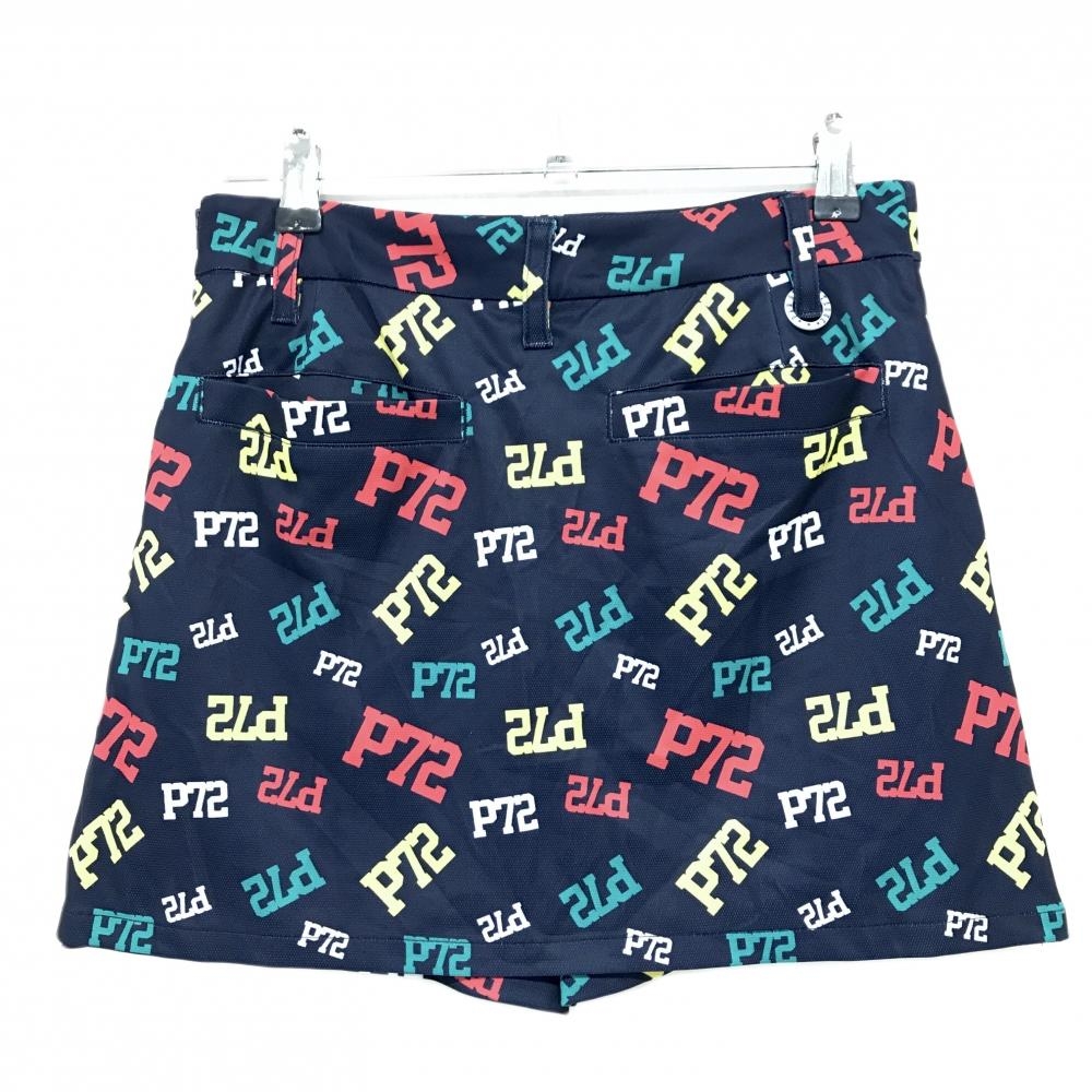 【美品】パーセッタンタドゥエ スカート ネイビー×マルチカラー ロゴ総柄 内側パンツ レディース S ゴルフウェア PAR72