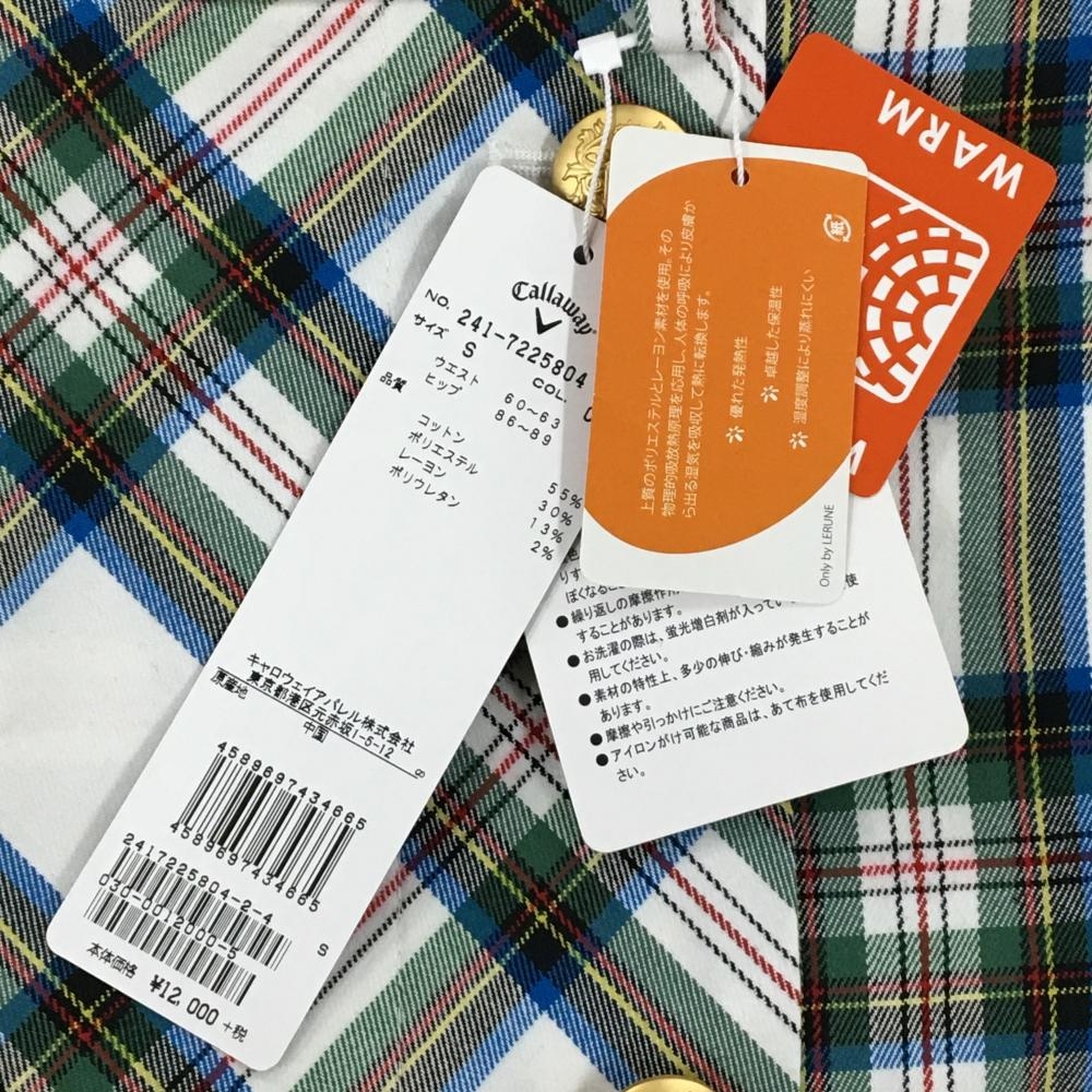 【新品】キャロウェイ スカート 白 グリーン×レッド チェック 金ボタン レディース S ゴルフウェア Callaway