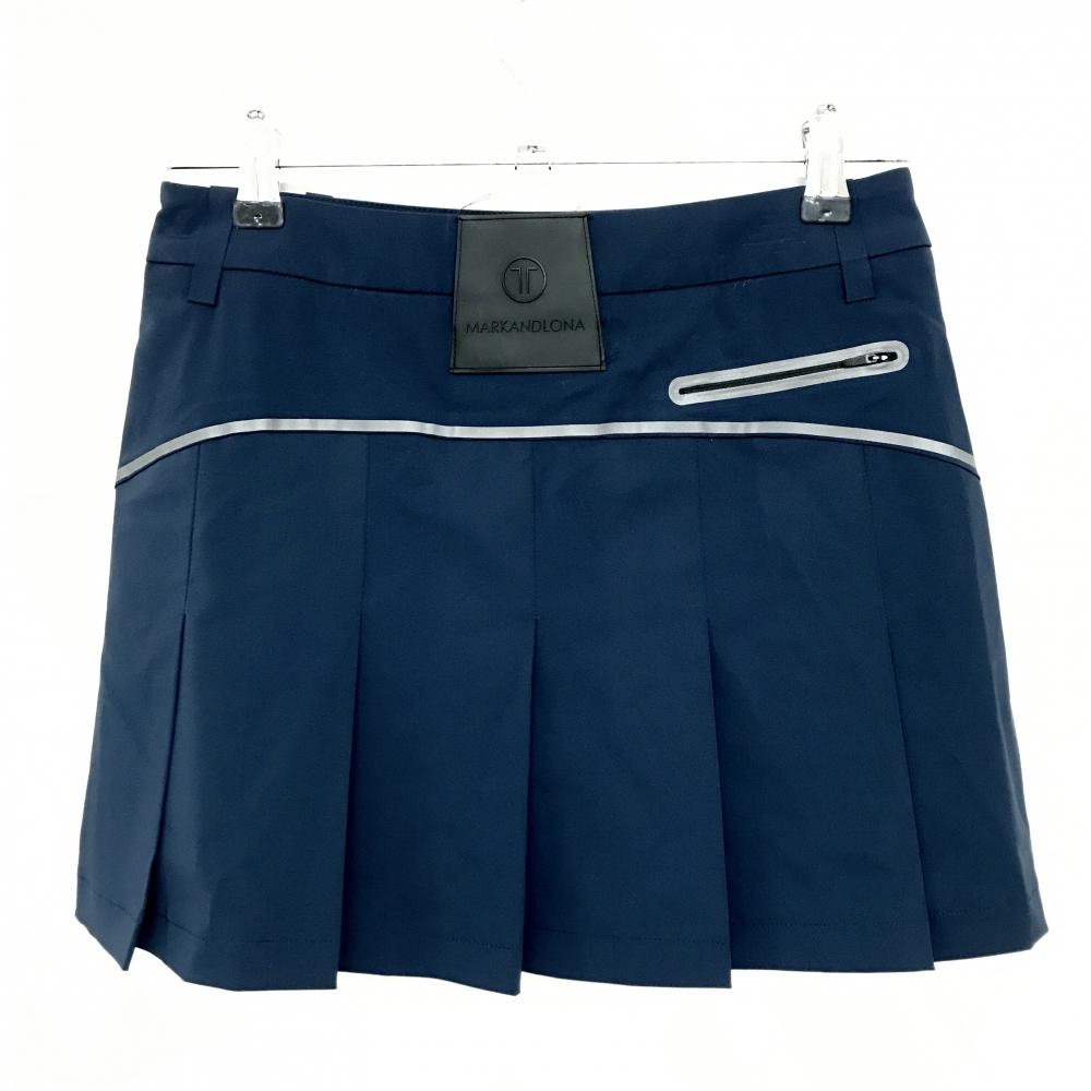 【美品】マークアンドロナ ストレッチスカート ネイビー 後ろプリーツ T-LINE 内側インナーパンツ レディース S ゴルフウェア MARK&LONA