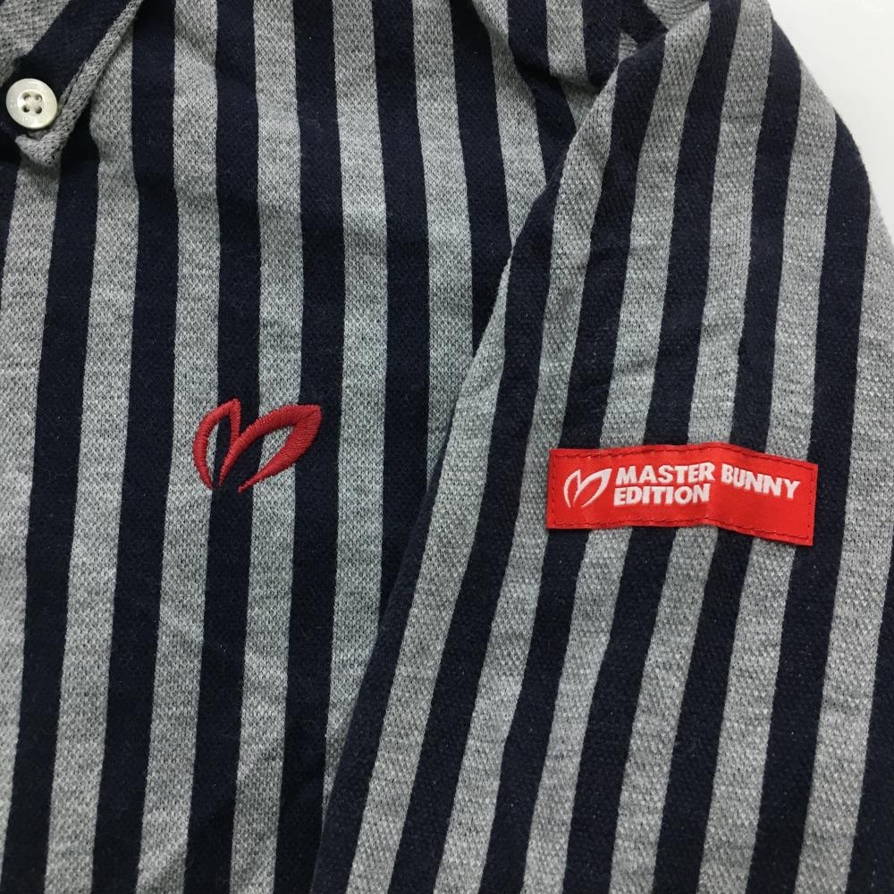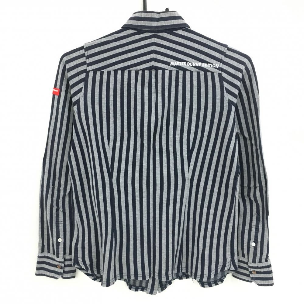 マスターバニー 長袖シャツ グレー×ネイビー ストライプ ボタンダウン レディース 1(M) ゴルフウェア MASTER BUNNY EDITION
