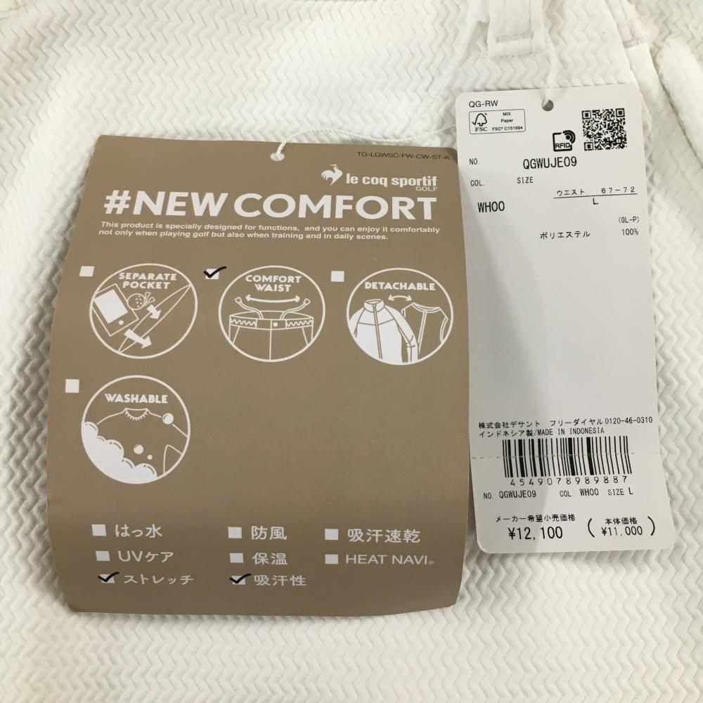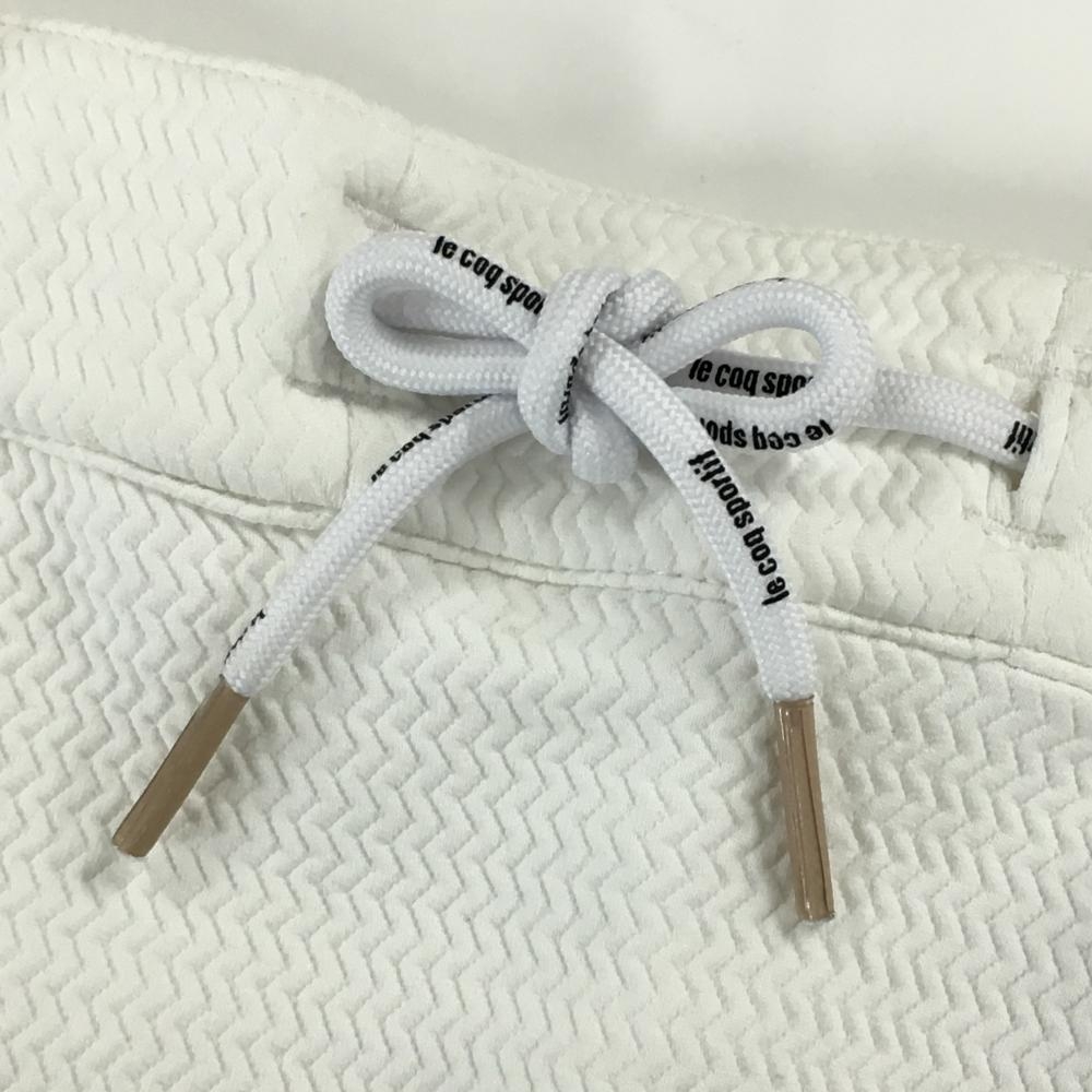 【新品】ルコックゴルフ スカート 白×黒 サイド英字ライン 織生地 ストレッチ 吸汗性 レディース L ゴルフウェア le coq sportif
