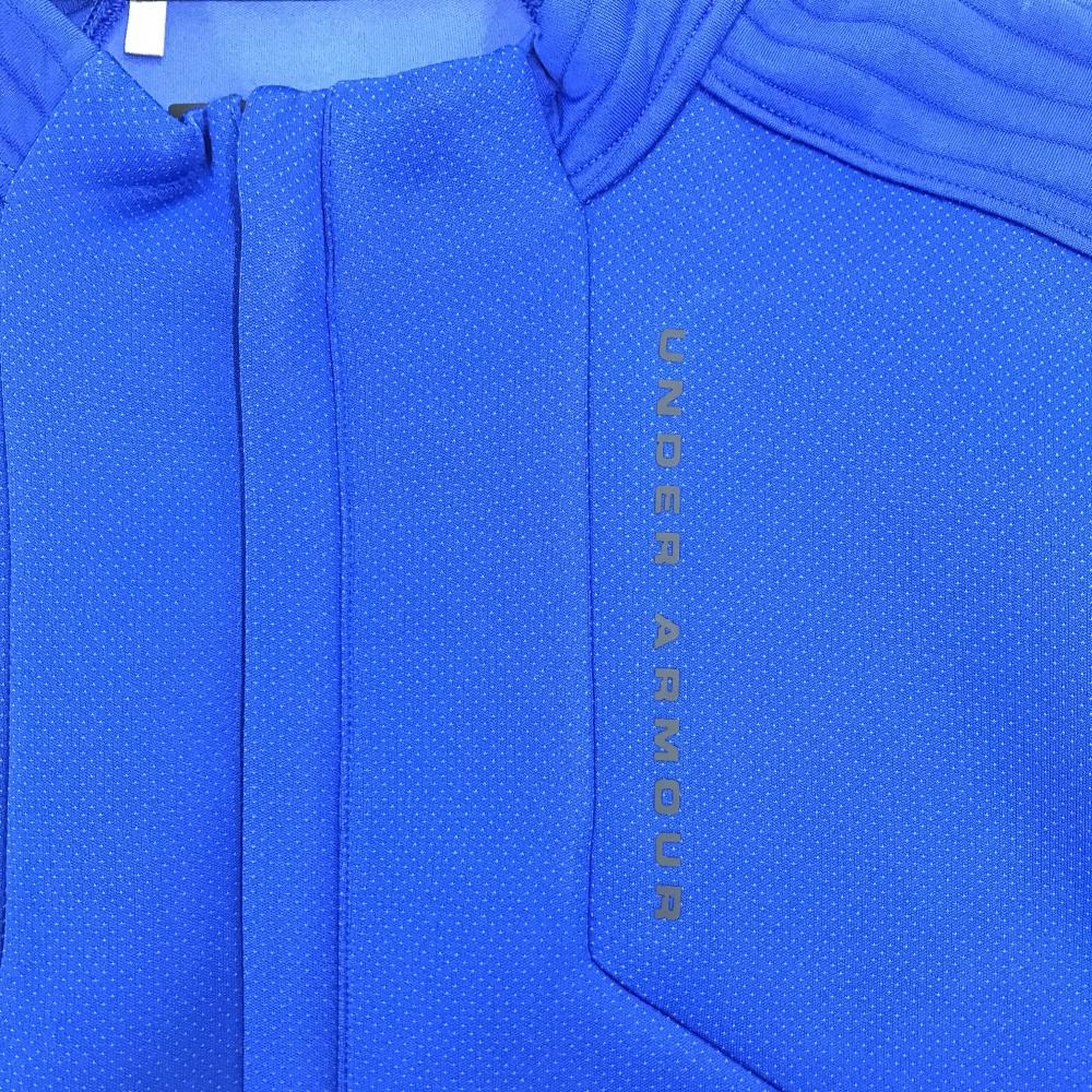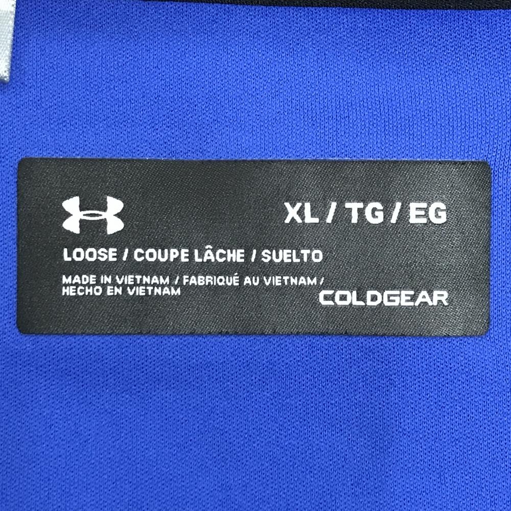 【超美品】アンダーアーマー 長袖ハイネックシャツ ブルー 身頃ピンドット風 コールドギア メンズ XL/TG/EG ゴルフウェア UNDER ARMOUR