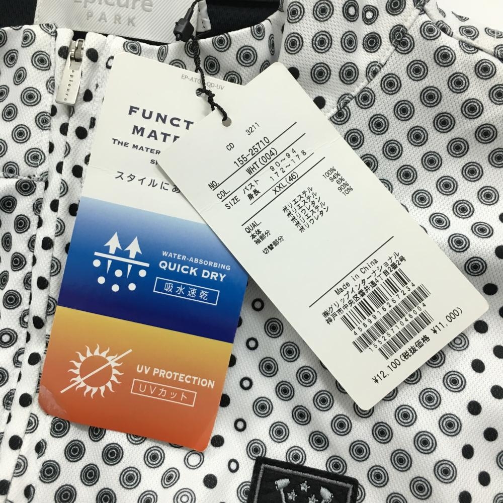 【新品】エピキュール 長袖ハイネックシャツ 白×黒 ハーフジップ 総柄 重ね着風 レディース XXL ゴルフウェア 大きいサイズ EPICURE
