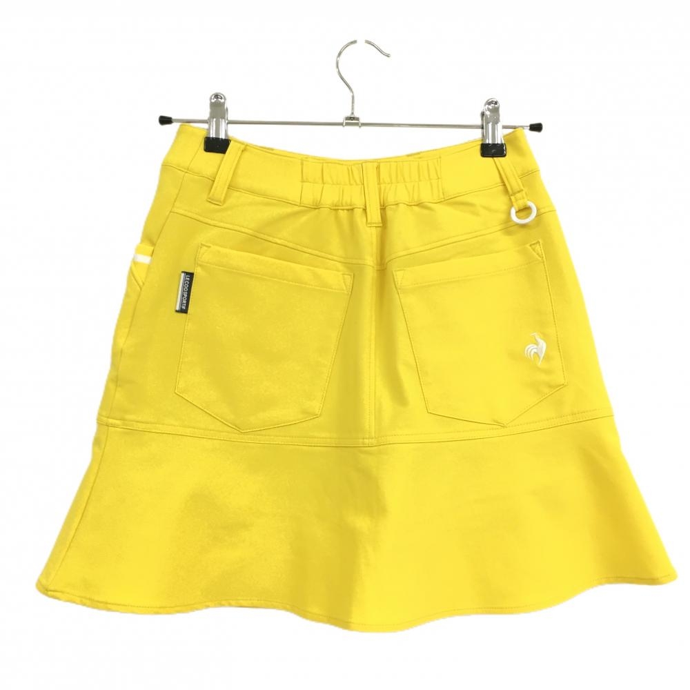【超美品】ルコックゴルフ スカート イエロー×白 フロントボタン 裾フリル 内側インナーパンツ レディース S ゴルフウェア le coq sportif
