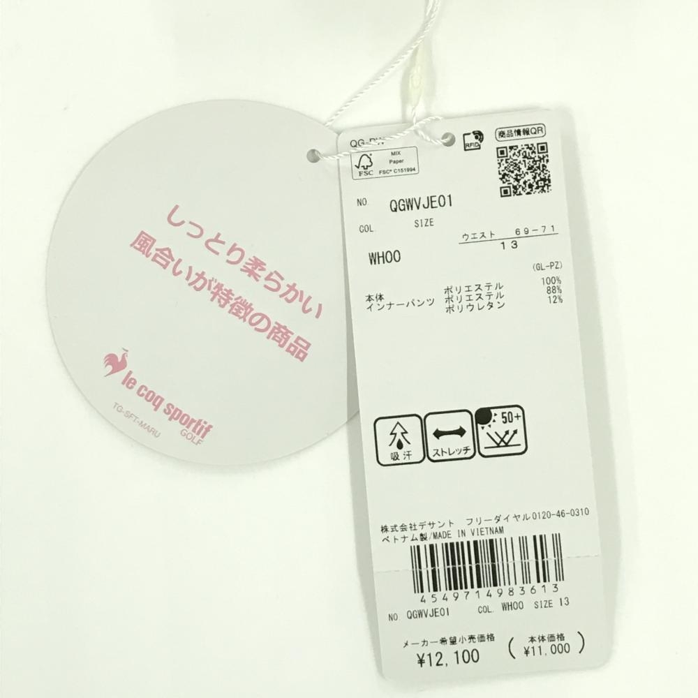【新品】ルコックゴルフ スカート 白 ロゴベージュ ウエスト一部ゴム 内側インナーパンツ レディース 13 ゴルフウェア le coq sportif