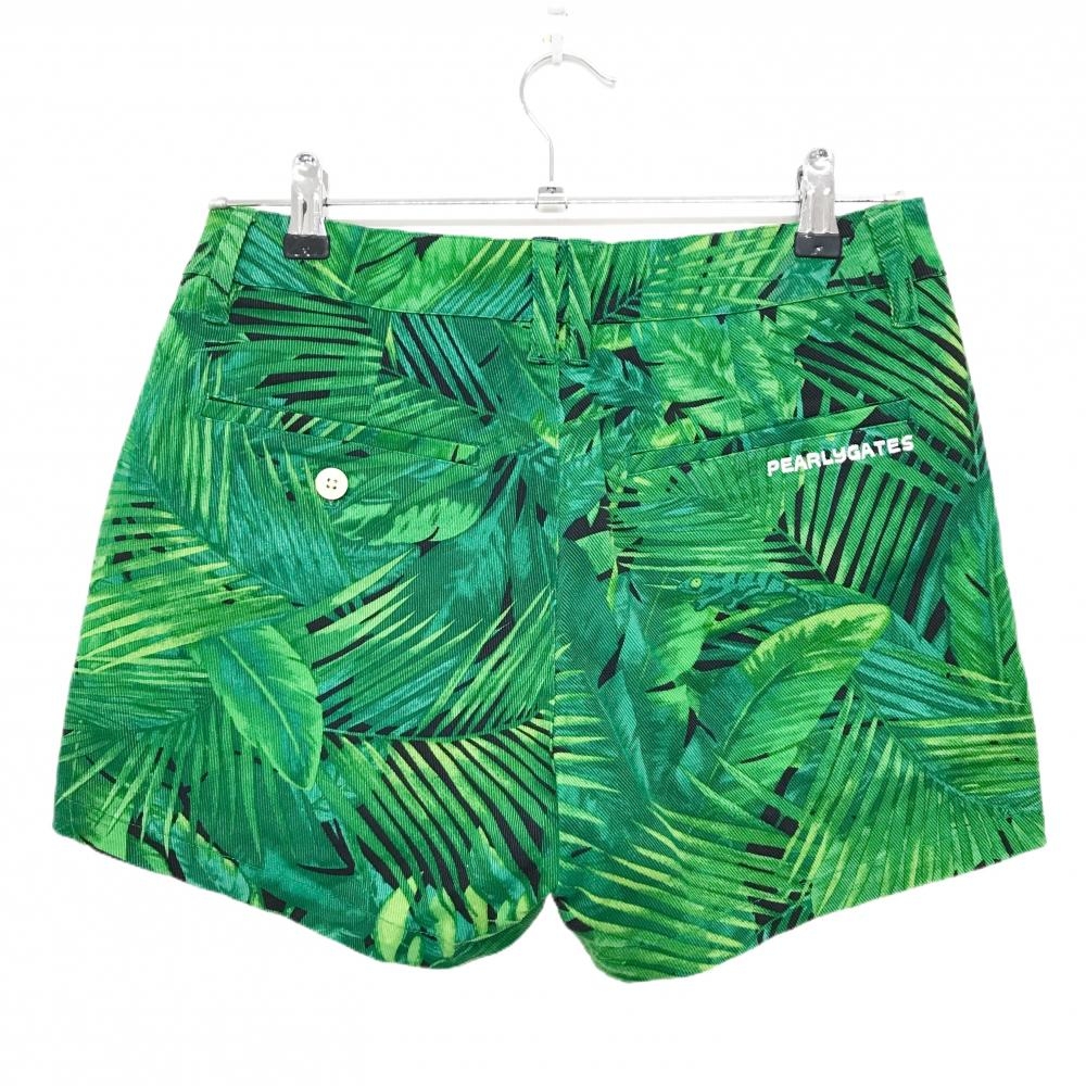 【超美品】パーリーゲイツ ショートパンツ グリーン×黒 リーフ柄 レディース 0(S) ゴルフウェア PEARLY GATES