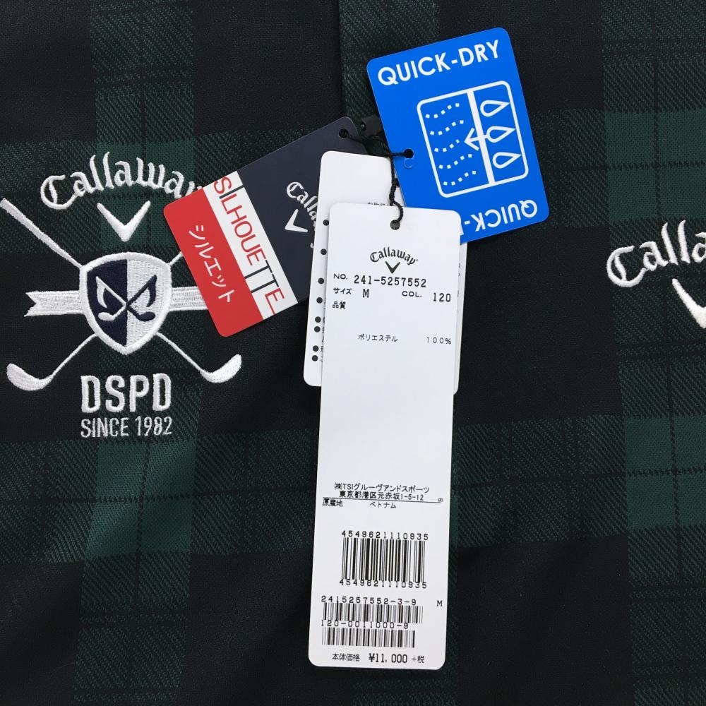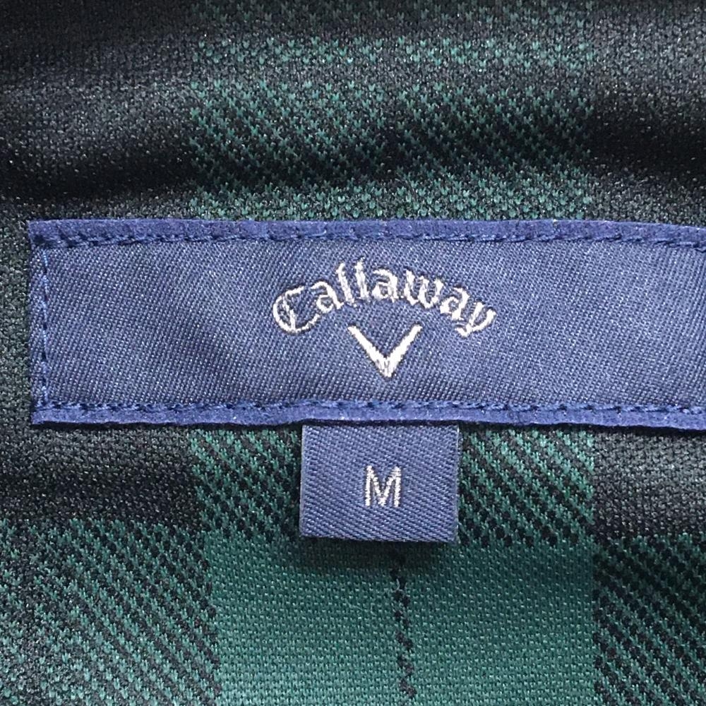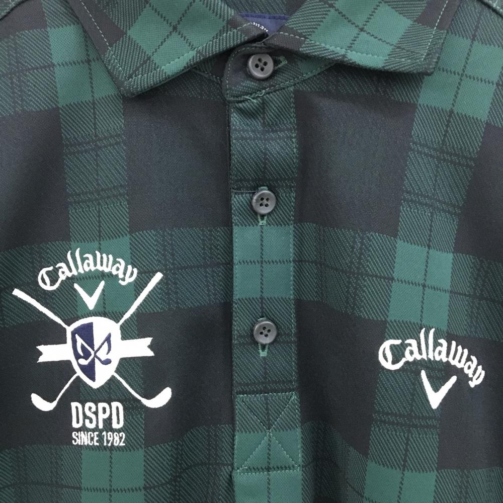 【新品】キャロウェイ 半袖ポロシャツ グリーン×黒 チェック ロゴ刺しゅう メンズ M ゴルフウェア Callaway
