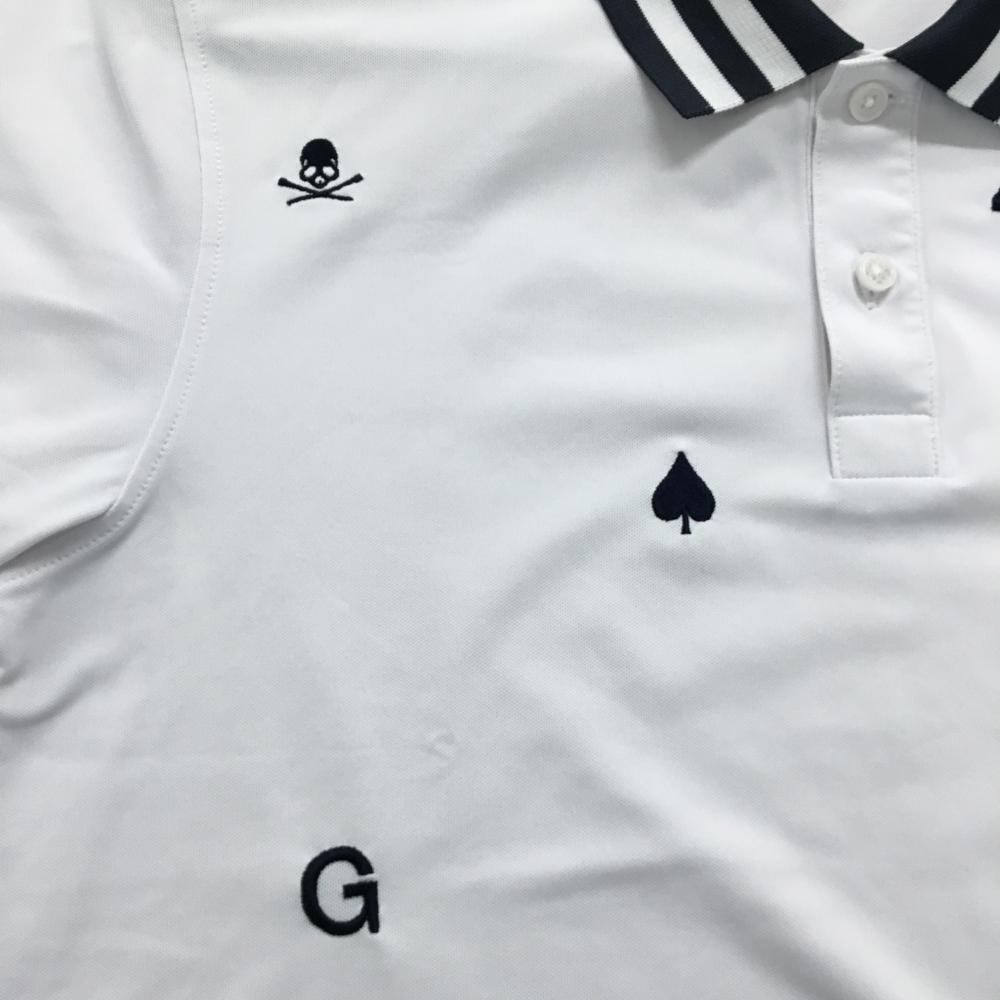 ジーフォア 半袖ポロシャツ 白×ネイビー 前面刺しゅう総柄 メンズ S ゴルフウェア G/FORE