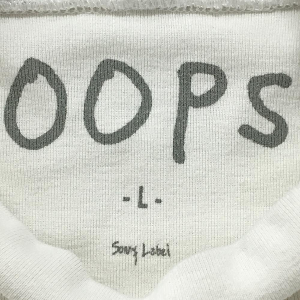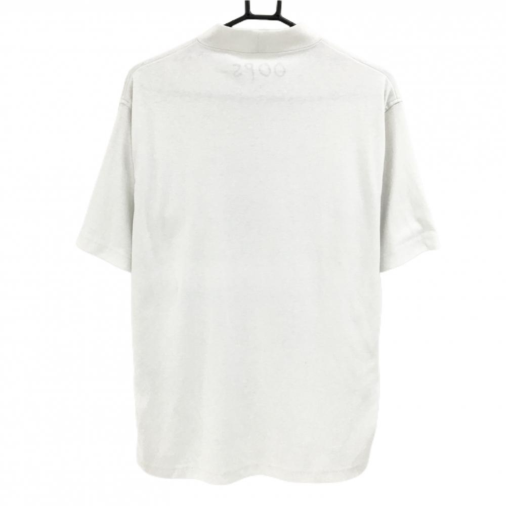 【美品】ウップス 半袖ハイネックシャツ 白×グレー ネックロゴ刺しゅう メンズ L ゴルフウェア OOPS