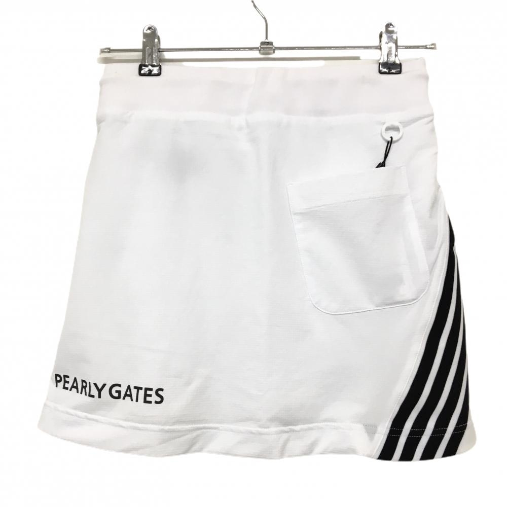 【新品】パーリーゲイツ スカート 白×黒 格子柄織生地 4ライン ウエストゴム 調節紐 レディース 0(S) ゴルフウェア PEARLY GATES
