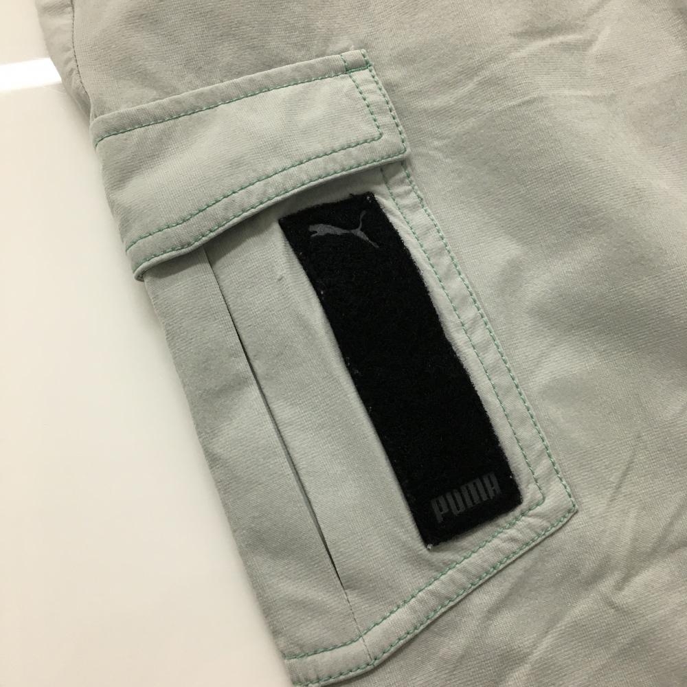 【美品】プーマ 半端丈パンツ ライトグレー グリーンステッチ ウエスト後ろゴム ロゴ刺しゅう メンズ L ゴルフウェア PUMA