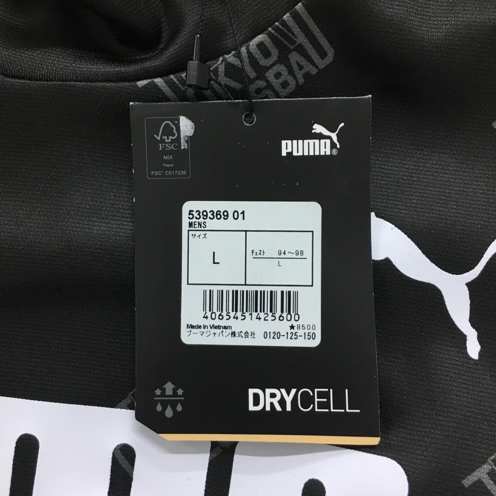 【新品】プーマ 長袖ハイネックシャツ 黒×グレー 英字総柄 DRYCELL メンズ L ゴルフウェア PUMA