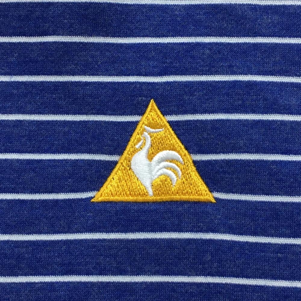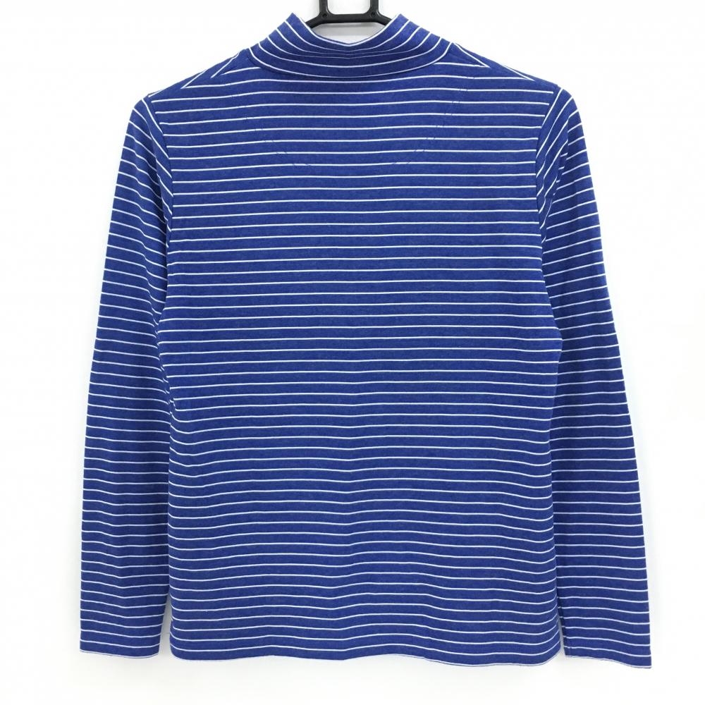 【超美品】ルコックゴルフ 長袖ハイネックシャツ ブルー×白 ボーダー ロゴ刺しゅう レディース L ゴルフウェア le coq sportif