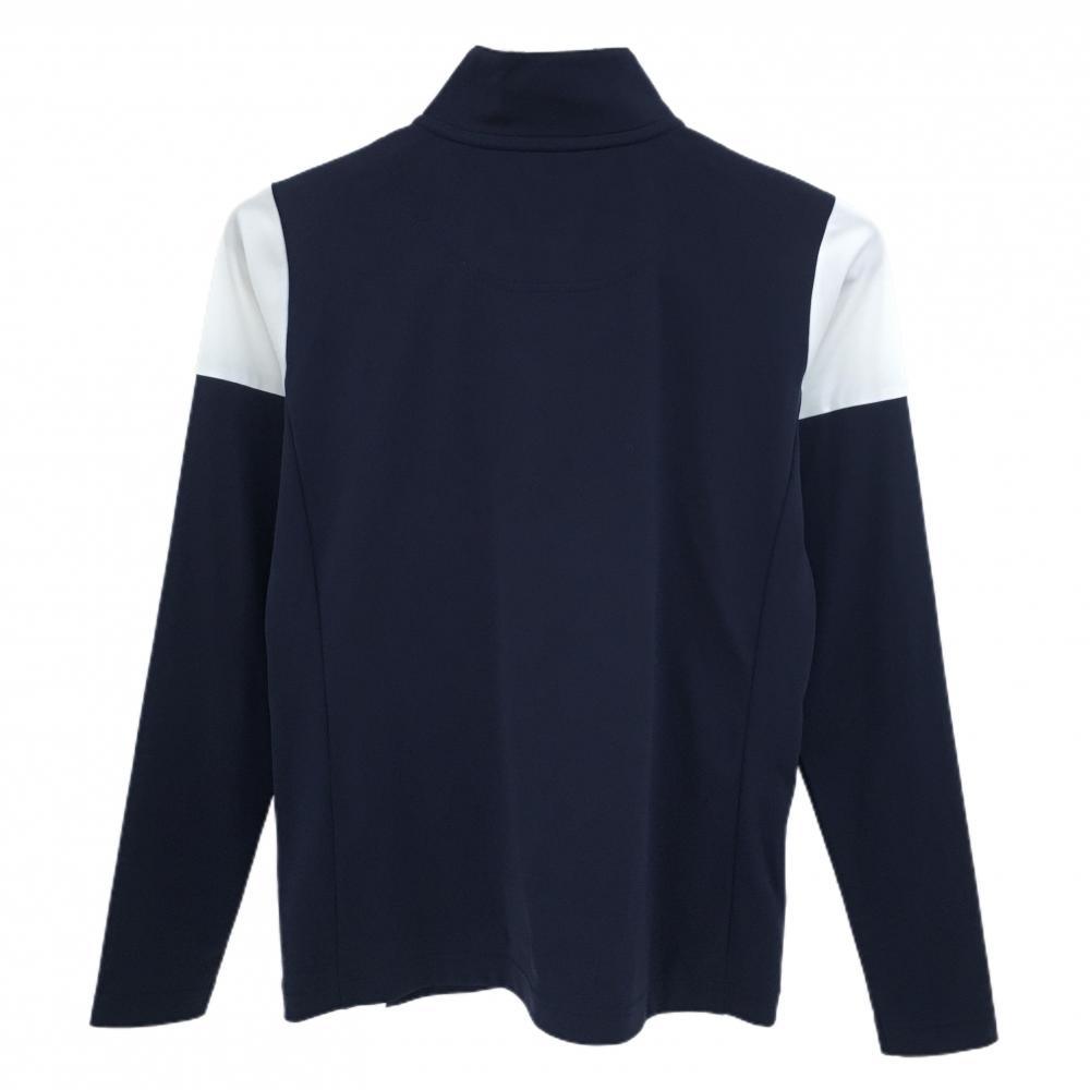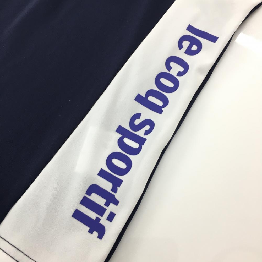 【超美品】ルコックゴルフ 長袖ハイネックシャツ ネイビー×白 ハーフジップ ロゴ レディース L ゴルフウェア le coq sportif