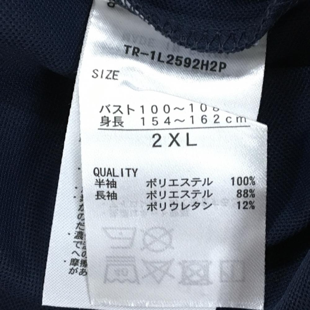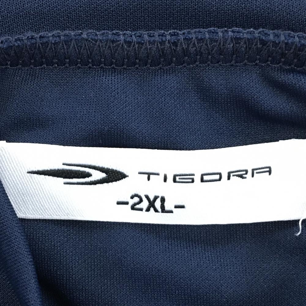 【超美品】ティゴラ 半袖ハイネックシャツ ネイビー×白 肩ライン 胸プリント レディース 2XL ゴルフウェア TIGORA