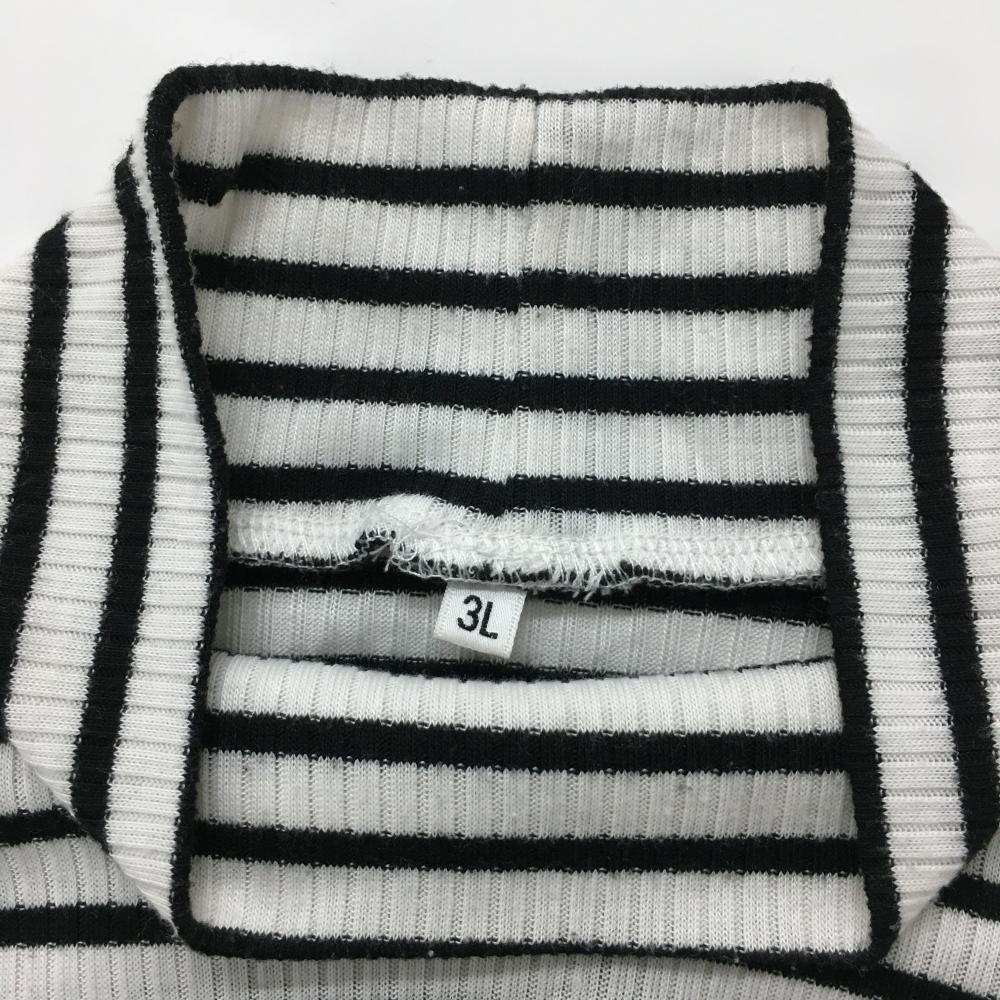 コルウィン 長袖ハイネックシャツ 白×黒 ボーダー レディース 3L ゴルフウェア 大きいサイズ Kolwin