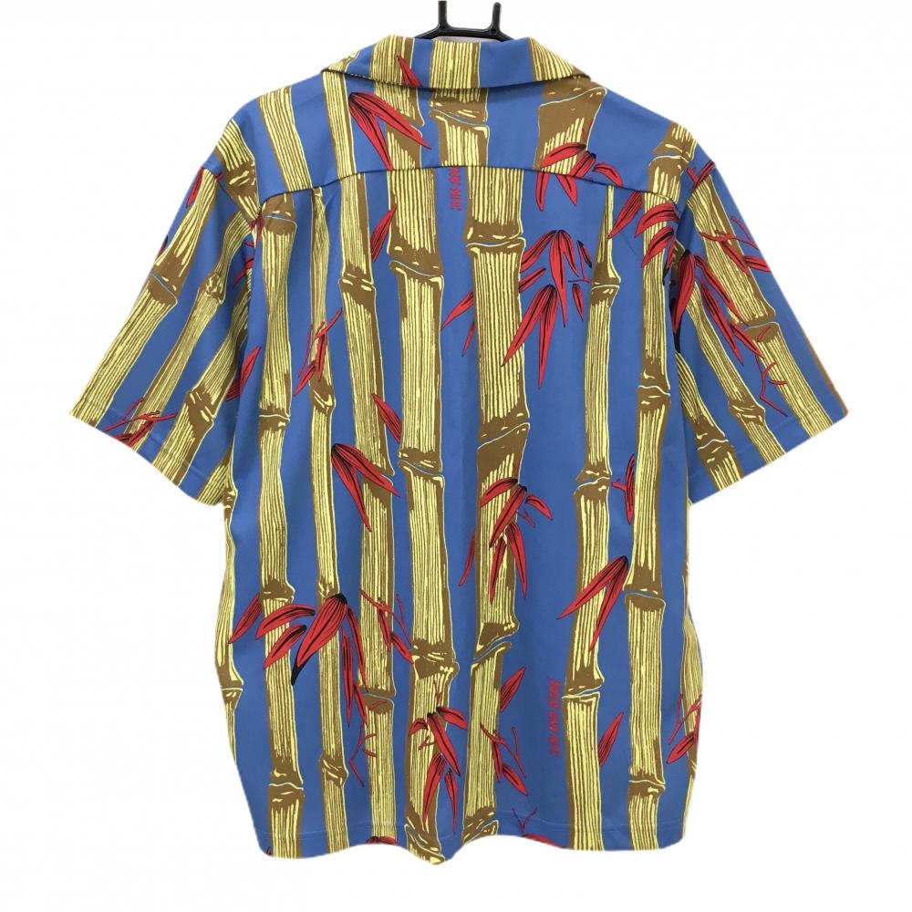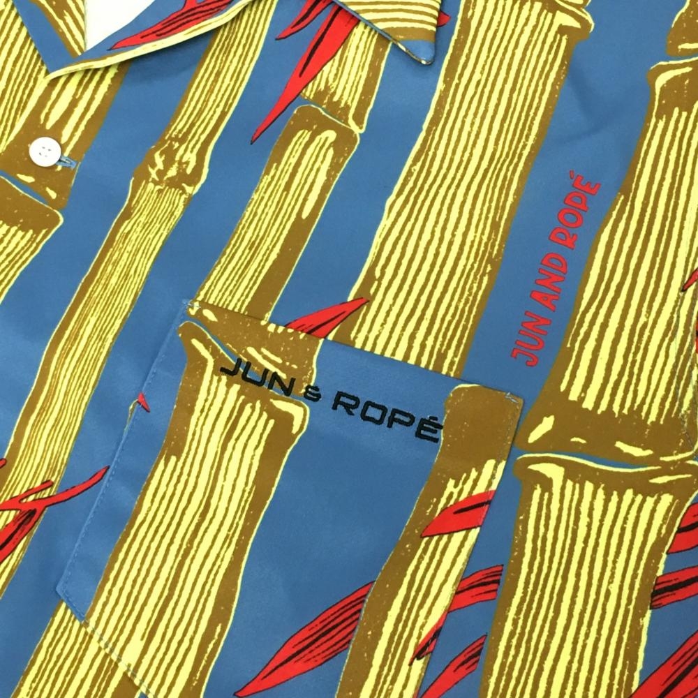 【超美品】ジュンアンドロペ 半袖シャツ スモーキーブルー×ライトイエロー×ライトブラウン 総柄 メンズ L ゴルフウェア JUN&ROPE