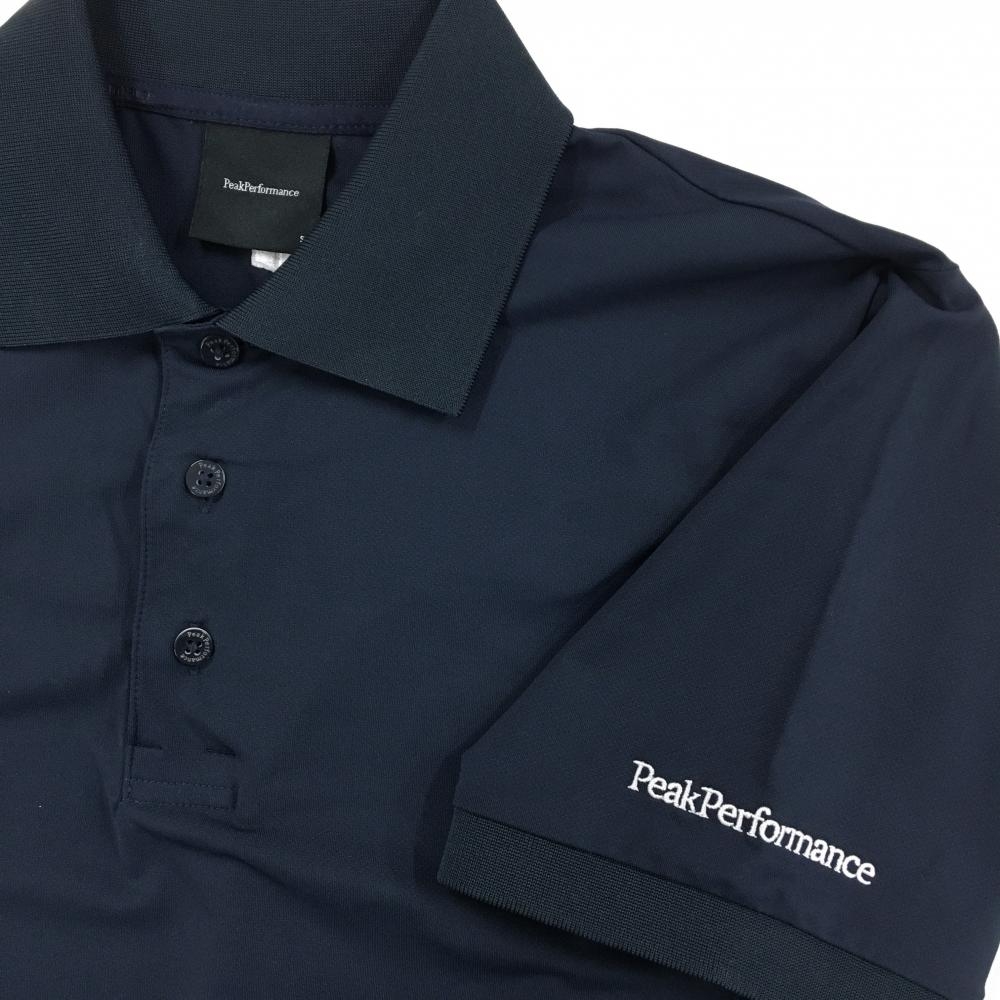 ピークパフォーマンス 半袖ポロシャツ ダークネイビー ロゴ白 メンズ S ゴルフウェア Peak Performance