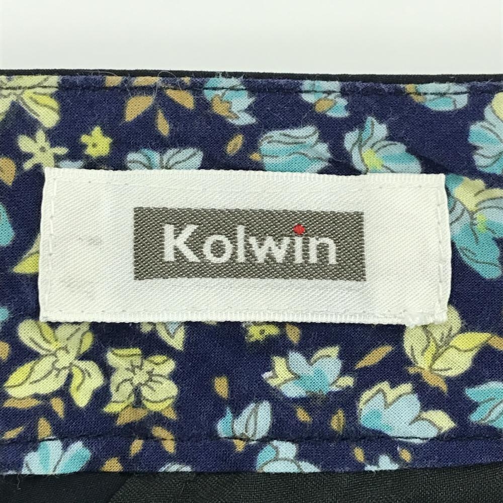 【美品】コルウィン パンツ ダークネイビー 後ろポケットロゴ ストレッチ 薄手 レディース 9 ゴルフウェア Kolwin
