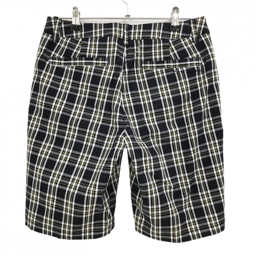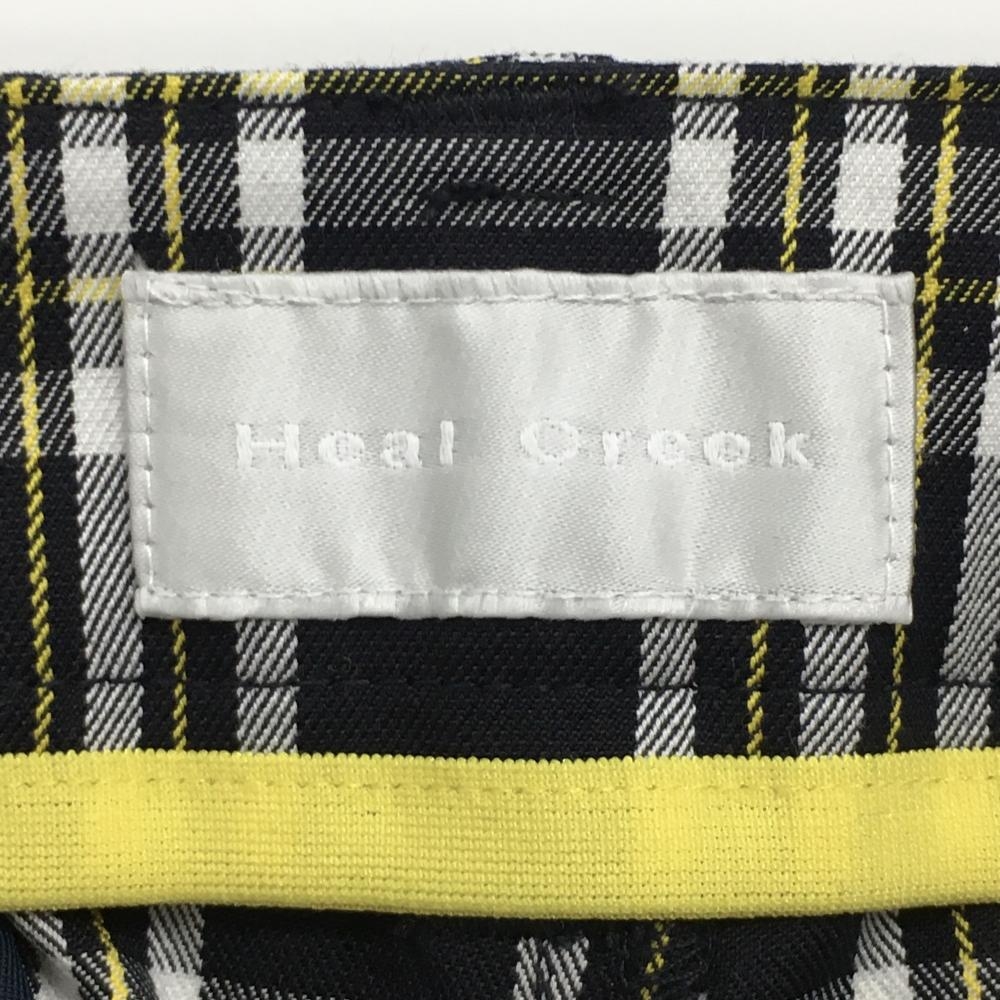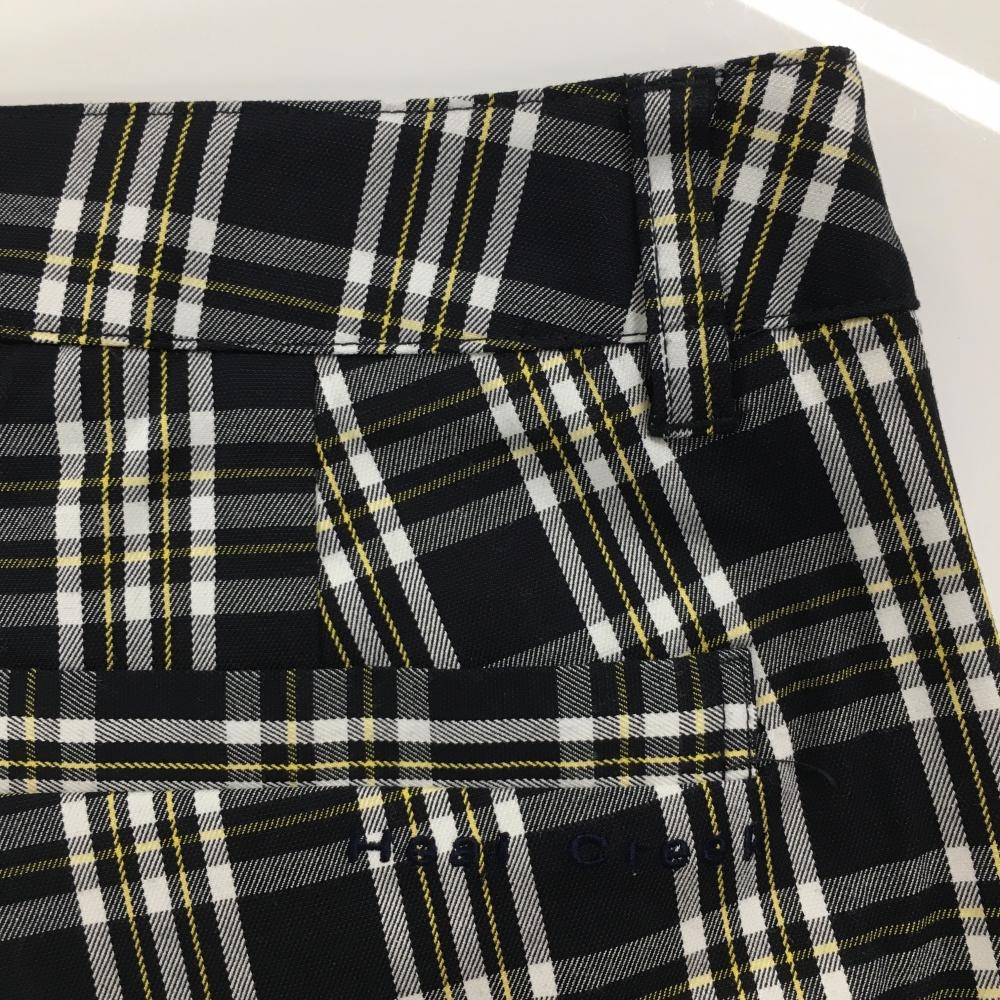 【超美品】ヒールクリーク ハーフパンツ ダークネイビー×白×イエロー チェック レディース 42(L) ゴルフウェア Heal Creek