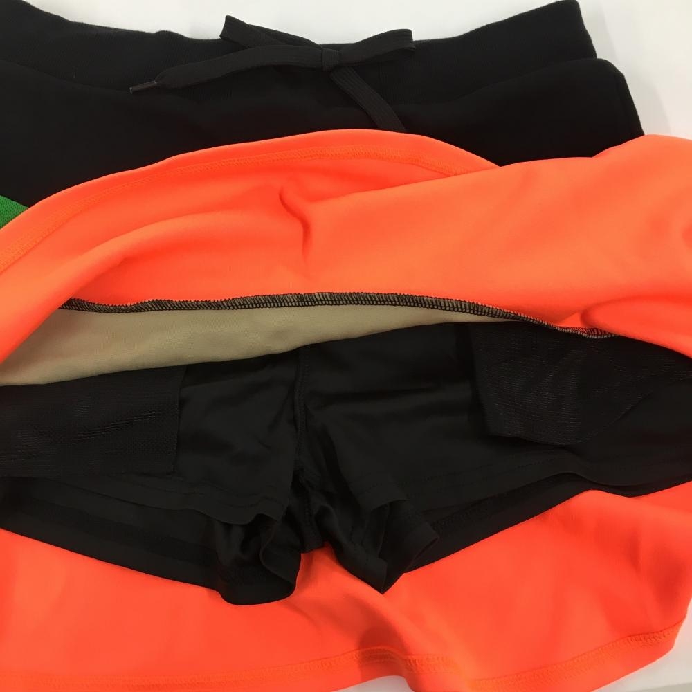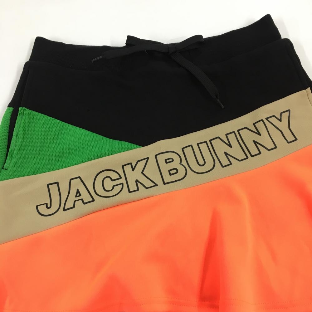【超美品】ジャックバニー スカート 黒×蛍光オレンジ フロントロゴ 一部ニット生地 レディース 2(L) ゴルフウェア Jack Bunny