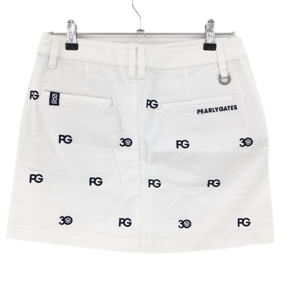 【超美品】パーリーゲイツ スカート 白×ネイビー ロゴ総柄 30周年 ニコちゃん スマイル レディース 2(L) ゴルフウェア PEARLY GATES