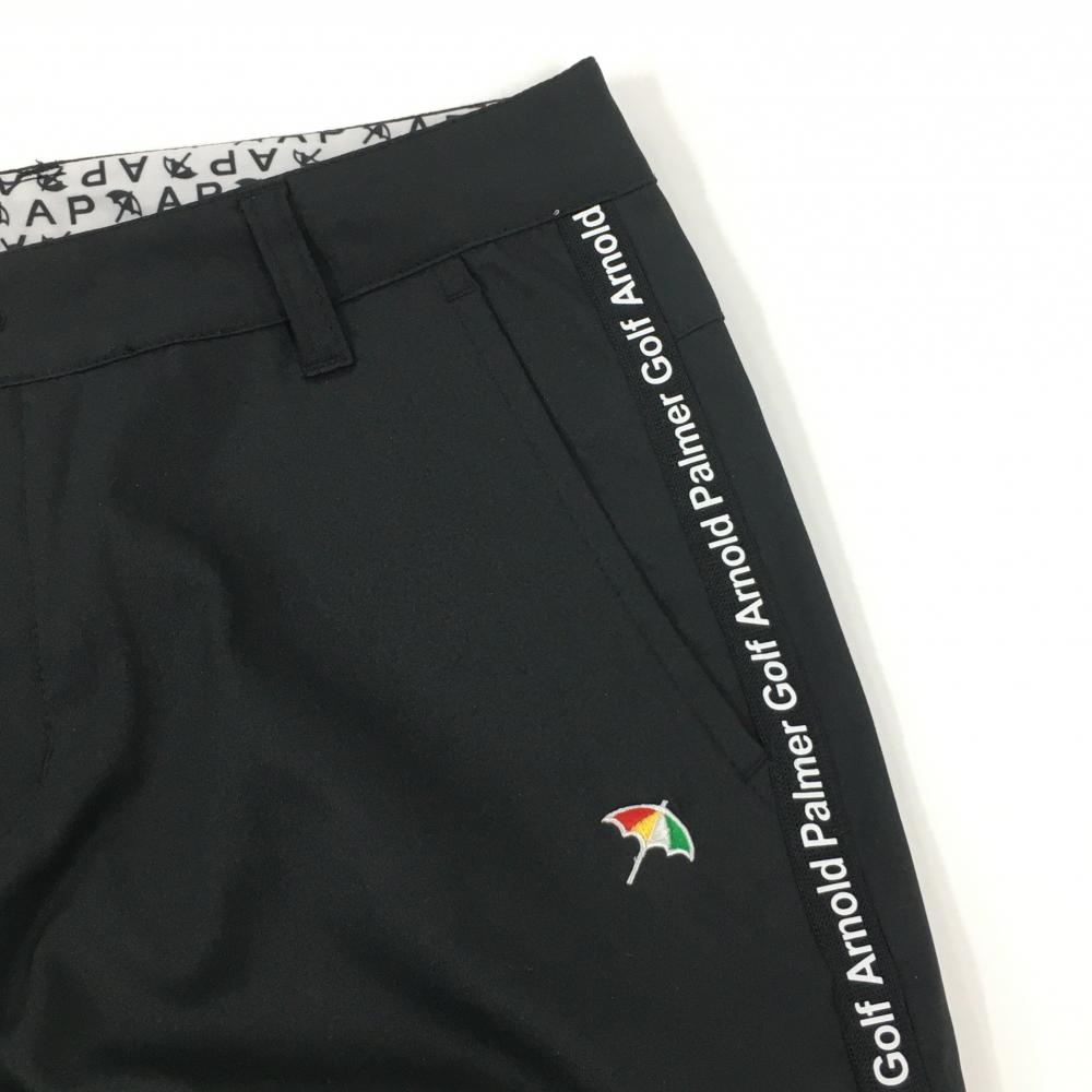【超美品】アーノルドパーマーゴルフ パンツ 黒×白 サイド英字ロゴライン ストレッチ 薄手 レディース 13 ゴルフウェア Arnold Palmer