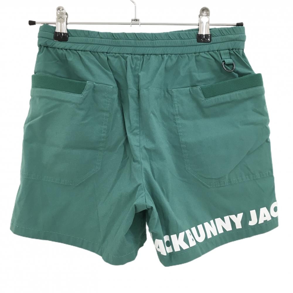 【美品】ジャックバニー ショートパンツ グリーン系×白 ロゴプリント ウエストゴム ストレッチ レディース 1(M) ゴルフウェア Jack Bunny
