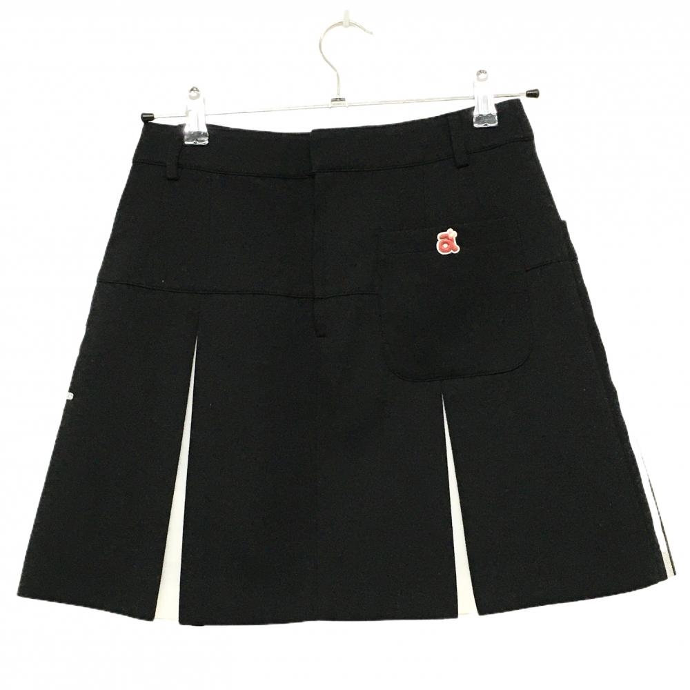 【超美品】アルチビオ スカート 黒×白 ボックスプリーツ ロゴシルバー 裏地付 レディース 38(M) ゴルフウェア archivio