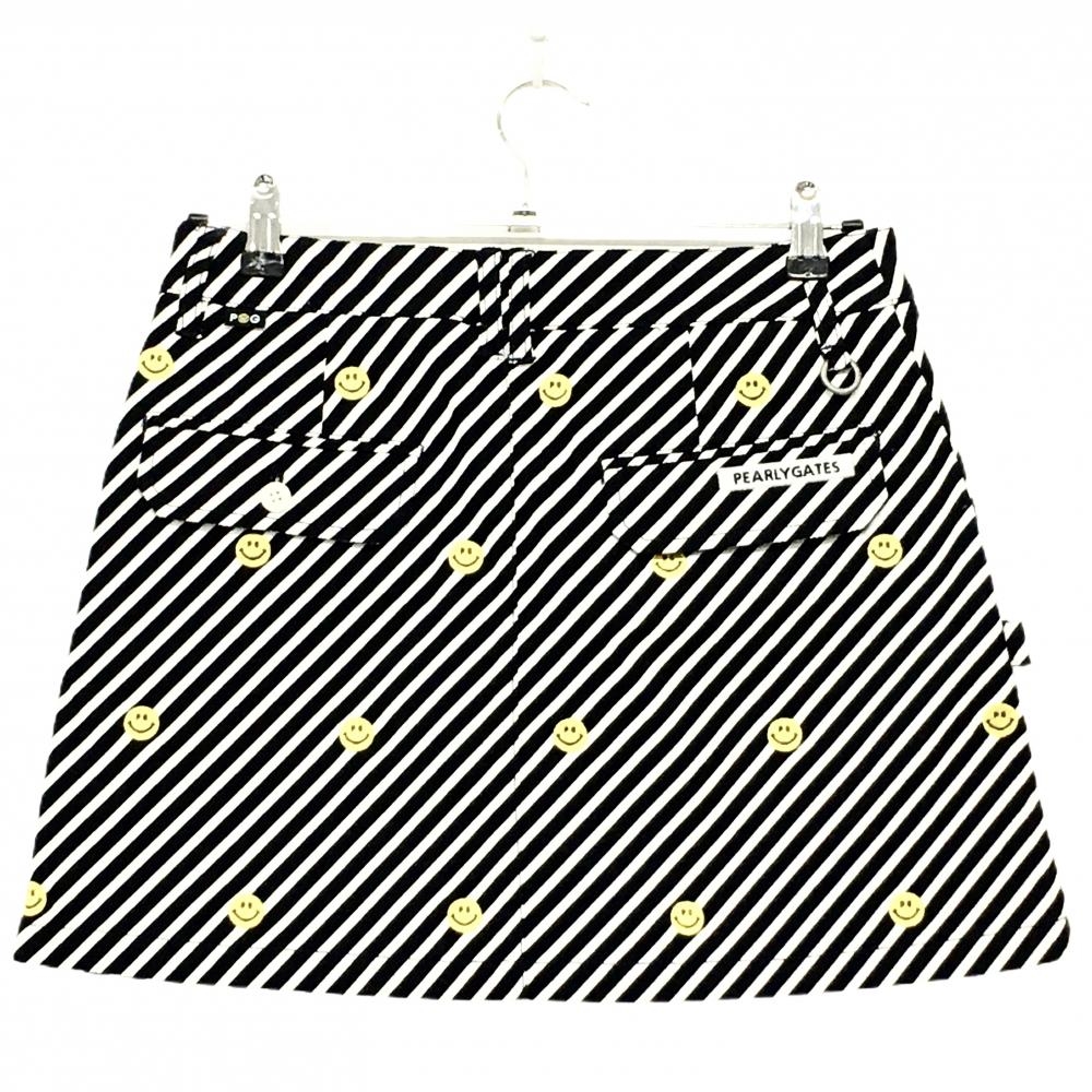 【超美品】パーリーゲイツ スカート 白×ダークネイビー 斜めストライプ ニコちゃん総柄 レディース 1(M) ゴルフウェア PEARLY GATES