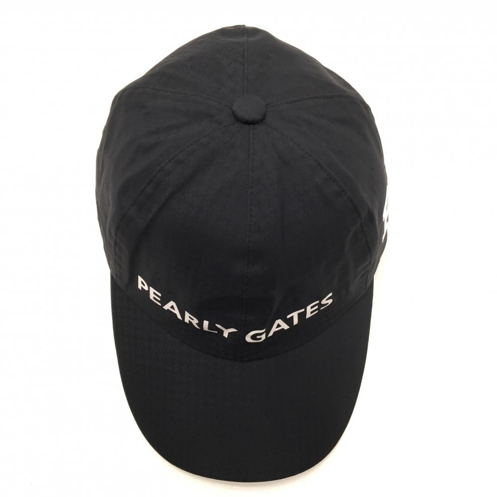 【超美品】パーリーゲイツ レインキャップ 黒 地模様 ロゴ白 ナイロン100% FR ゴルフウェア PEARLY GATES