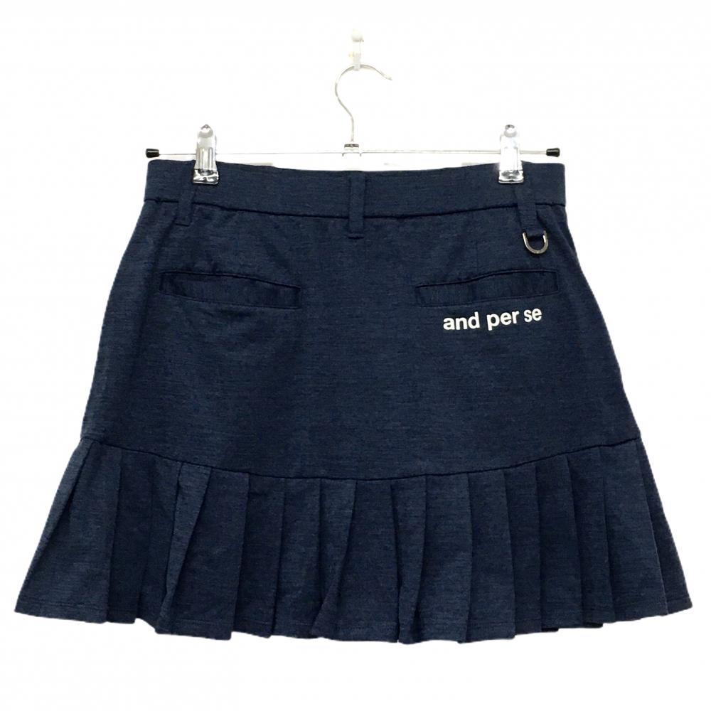【超美品】アンパスィ スカート 杢ネイビー 裾プリーツ ウエストゴム レディース L ゴルフウェア and per se
