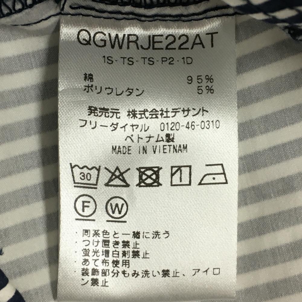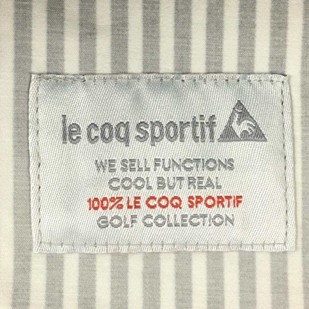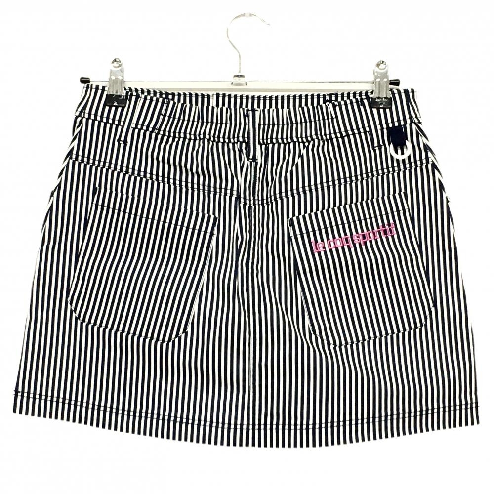 【美品】ルコックゴルフ スカート 白×ネイビー ストライプ ロゴピンク レディース 9 ゴルフウェア le coq sportif