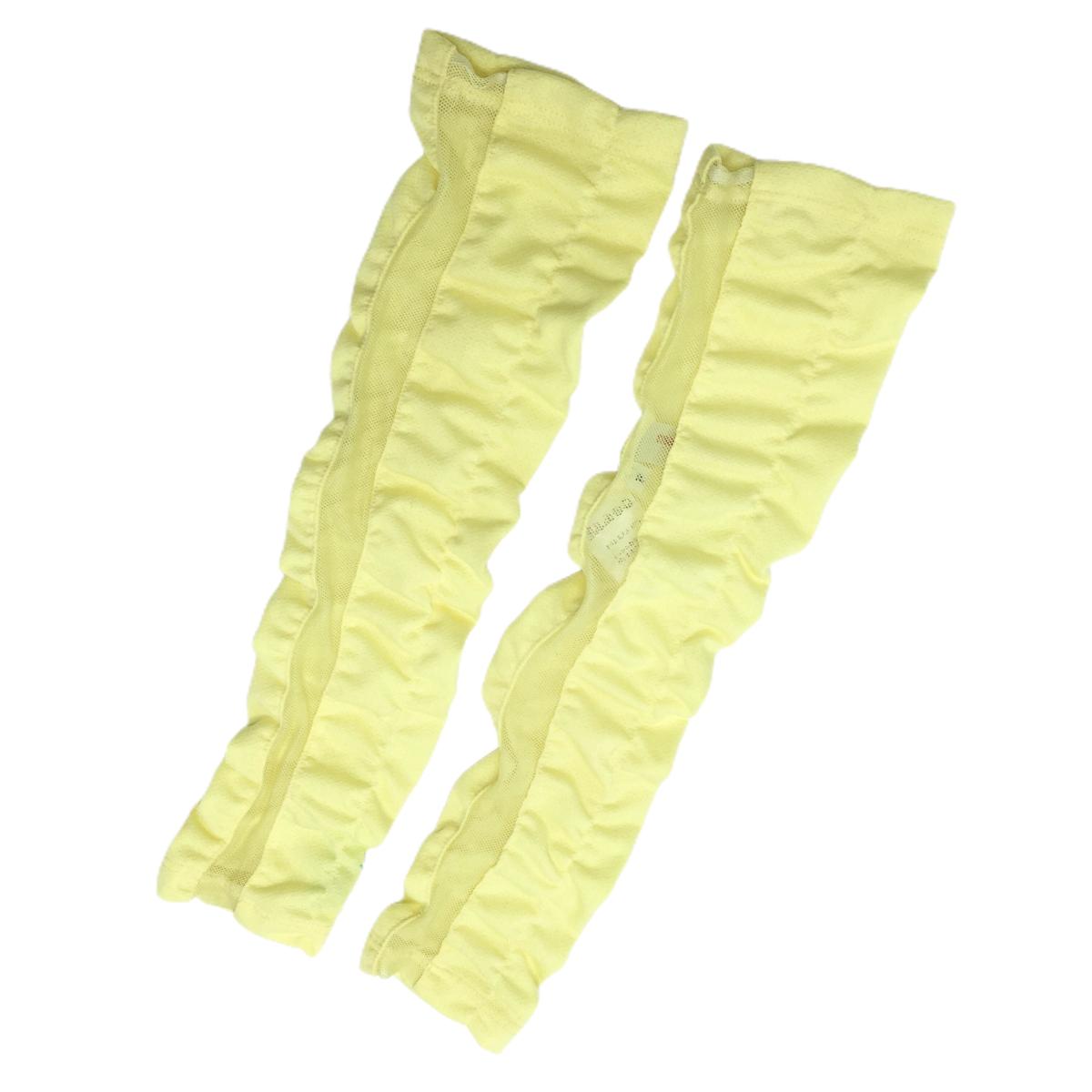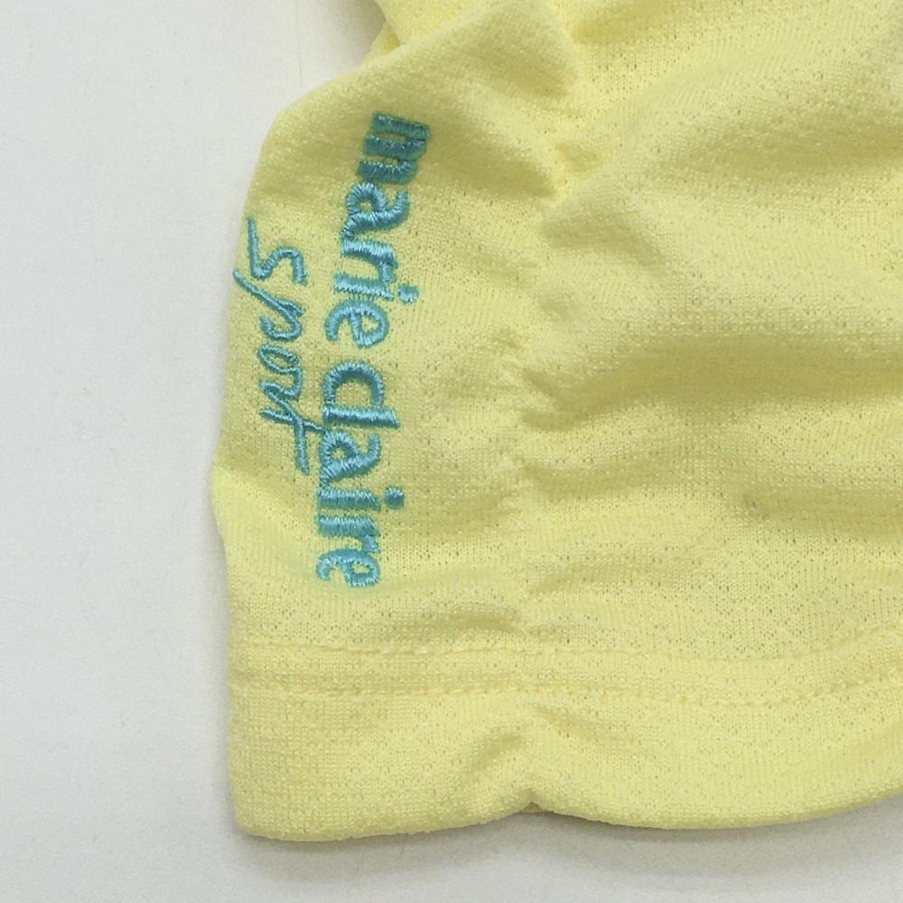 【超美品】マリクレールスポール アームカバー イエロー×ライトブルー ロゴ刺しゅう レディース F ゴルフウェア marie claire