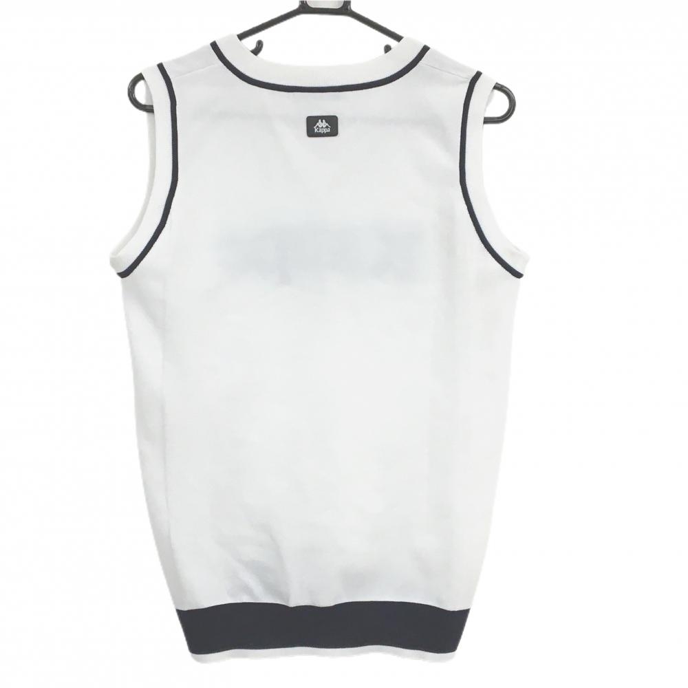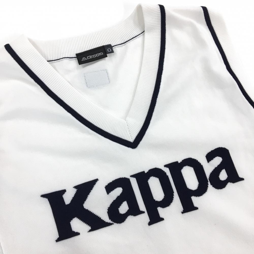 【超美品】カッパ ニットベスト 白×ネイビー Vネック ビッグロゴ レディース O(XL) ゴルフウェア Kappa