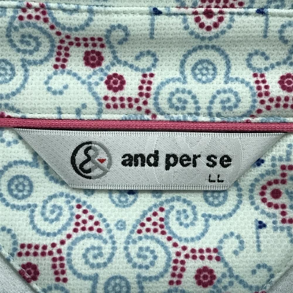 【新品】アンパスィ 長袖ポロシャツ ライトブルー×ブルー系 総柄 UPF50+ メンズ LL ゴルフウェア and per se